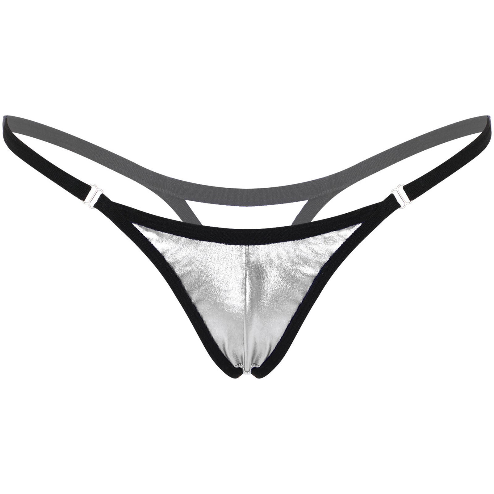 как выглядит Womens Shiny Metallic Panty G-string Low Rise Underwear T-Back Triangle Briefs фото