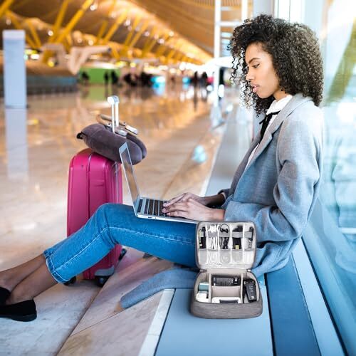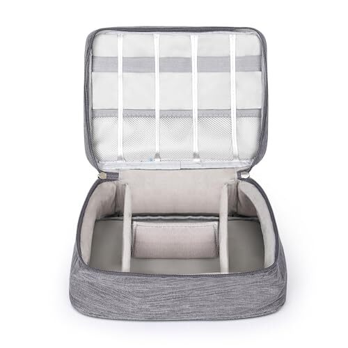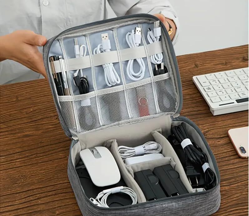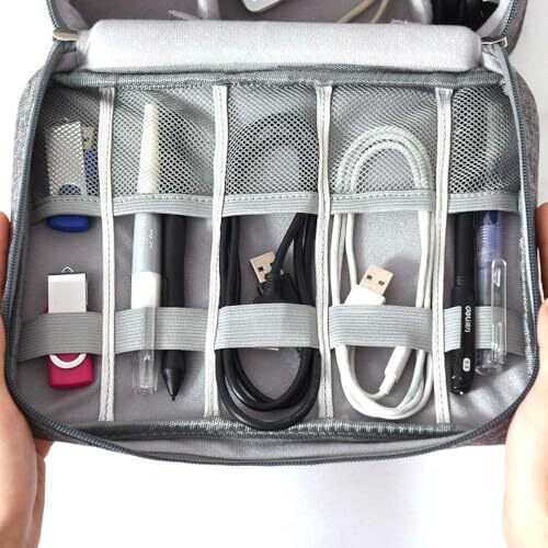Travel Cable Organizer Bag for Adapters, Cords, and Phone, Mobile Device, Grey