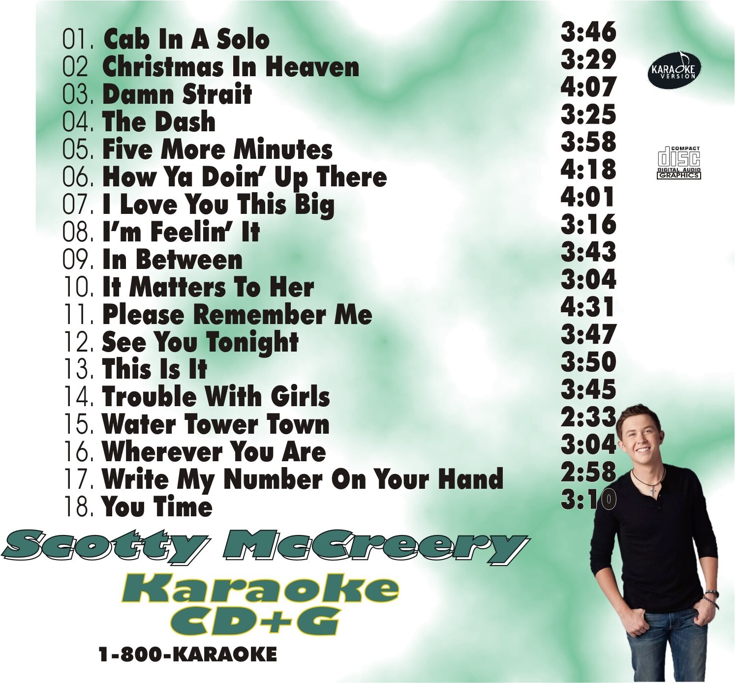 CUSTOM KARAOKE SCOTTY McCREERY 18 GREAT SONG cdg CD G RARE CHARTED CAB SOLO