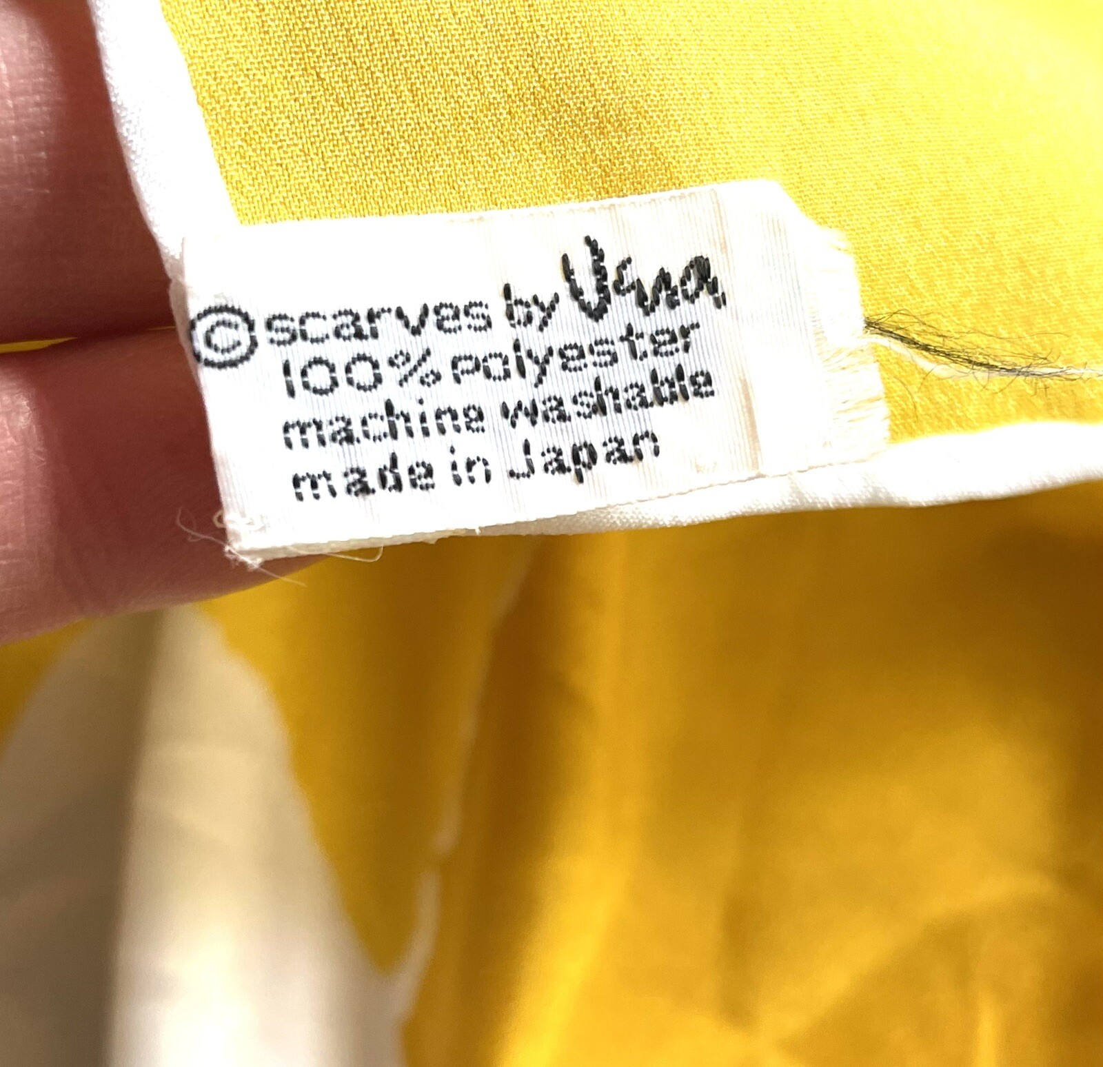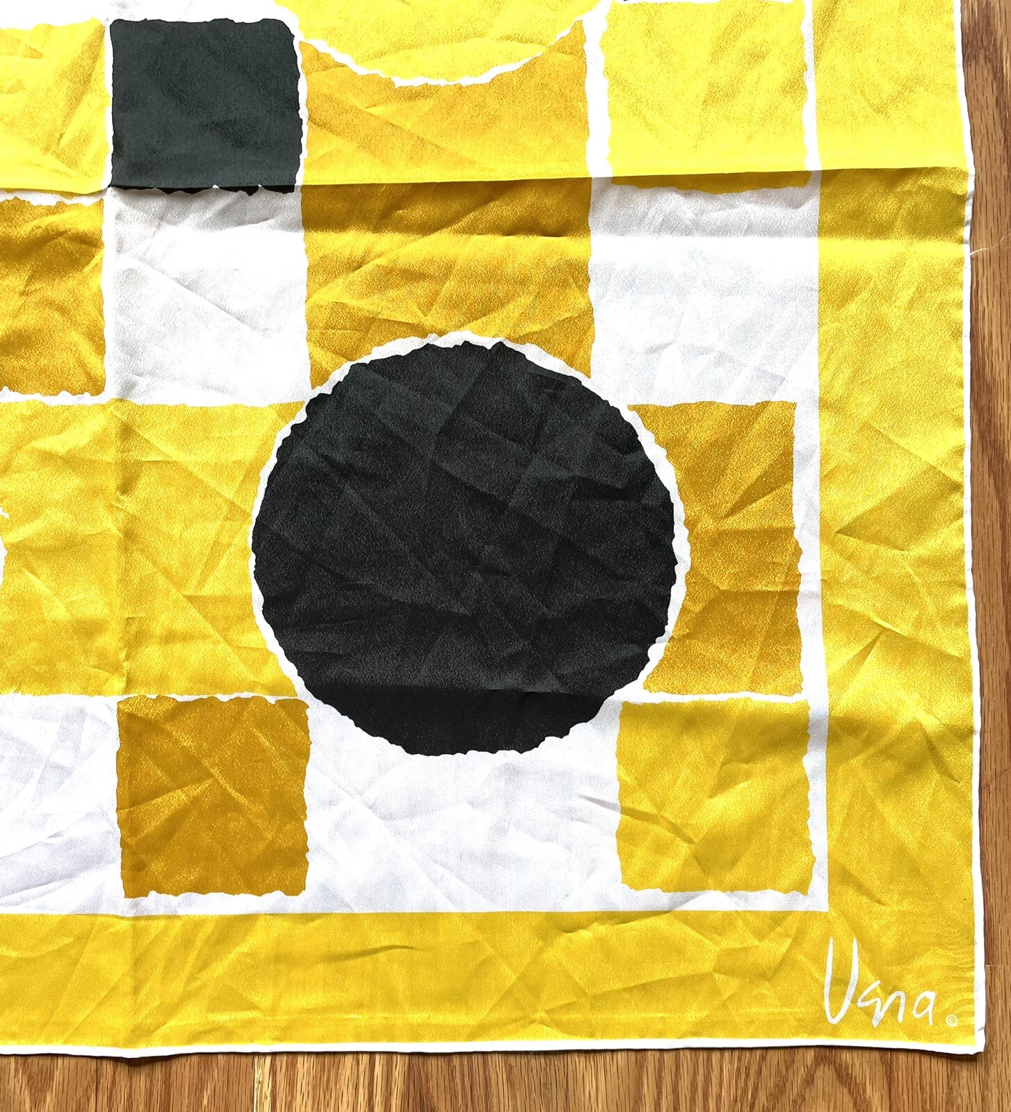 Vintage Vera Neumann Scarf Black White Yellow Geometric 26.5 Sq Polyester Japan