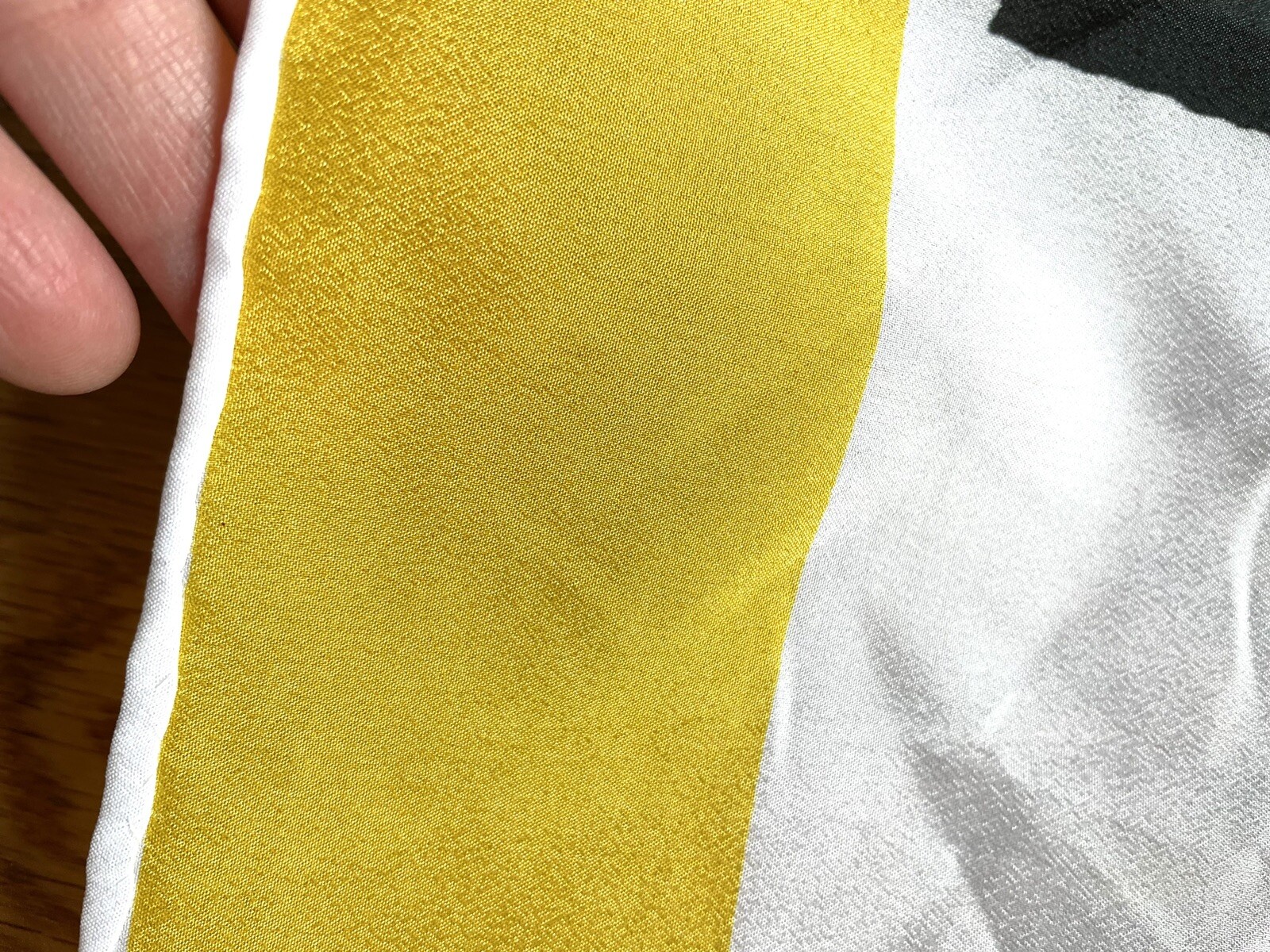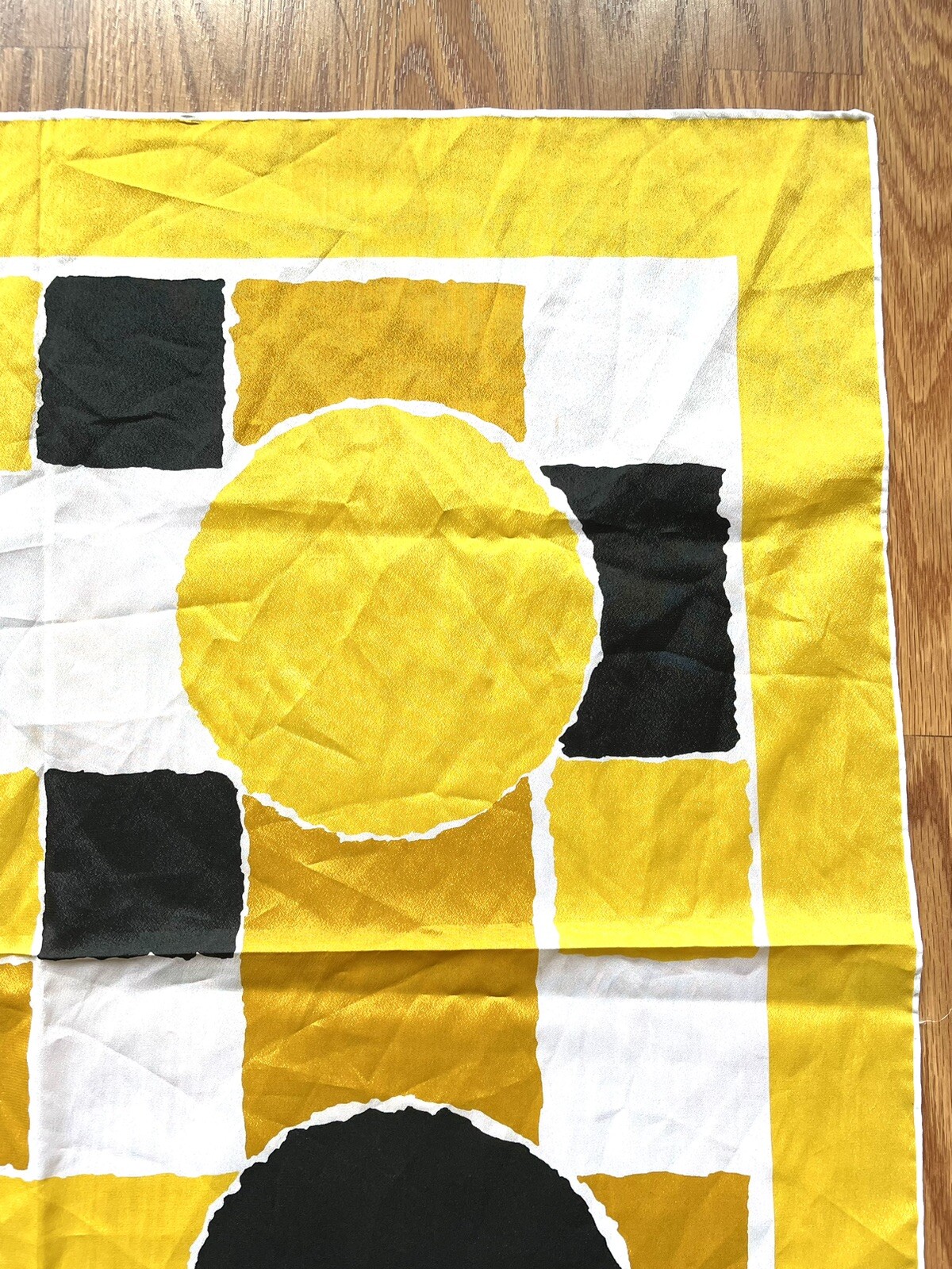 как выглядит Vintage Vera Neumann Scarf Black White Yellow Geometric 26.5 Sq Polyester Japan фото