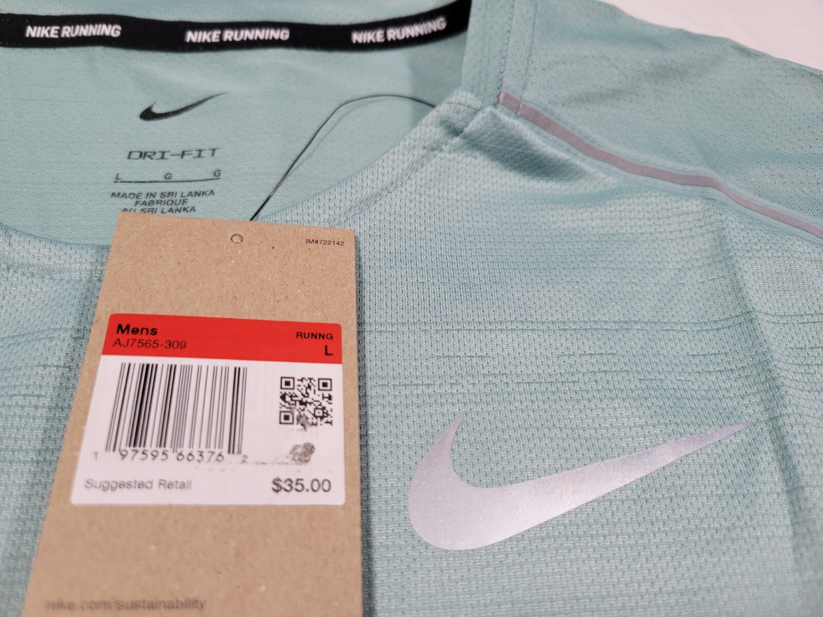 Nike Men s Dri Fit Miler Running Shirt AJ7565-309 Hazel Green Reflective