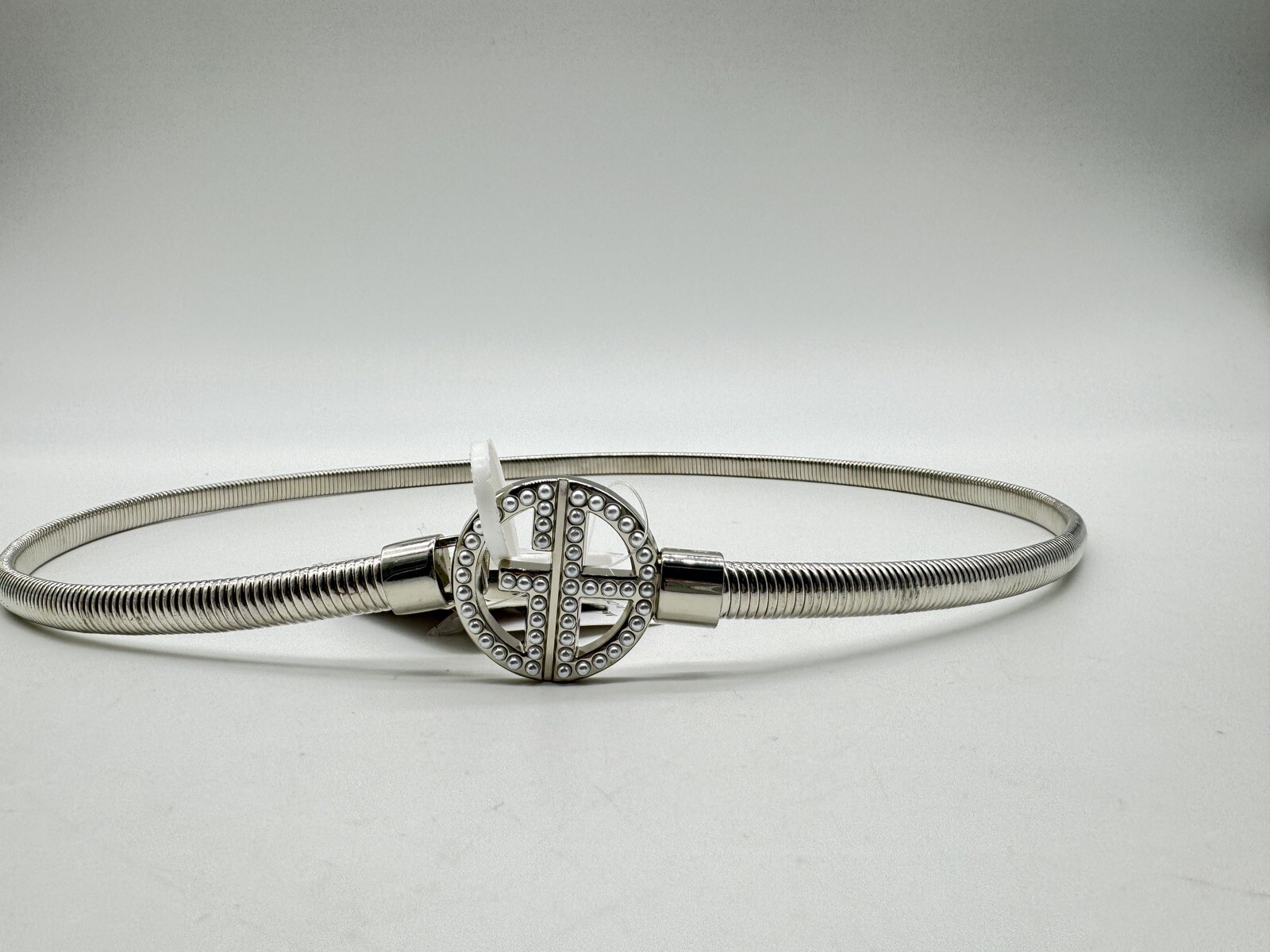 GIANI BERNINI embellished logo cobra women's skinny stretch belt- M/L -Silver
