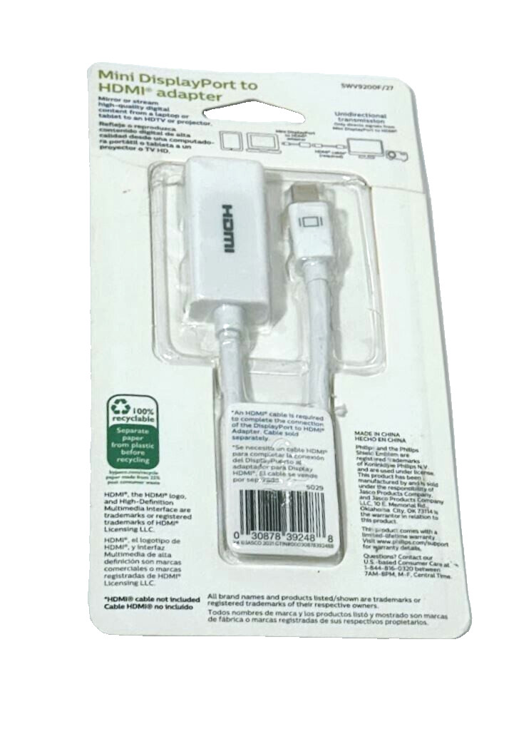 Mini Display Port to HDMI Adapter Philips-Cable/Cord Length: 6 Distressed Box