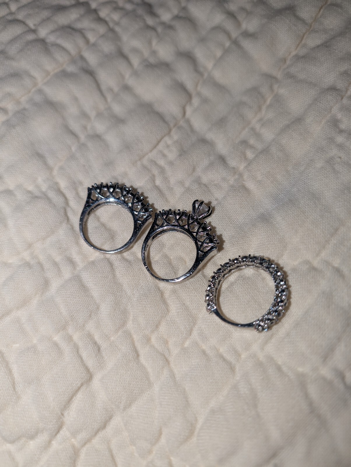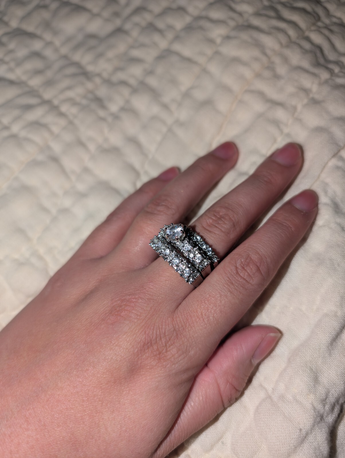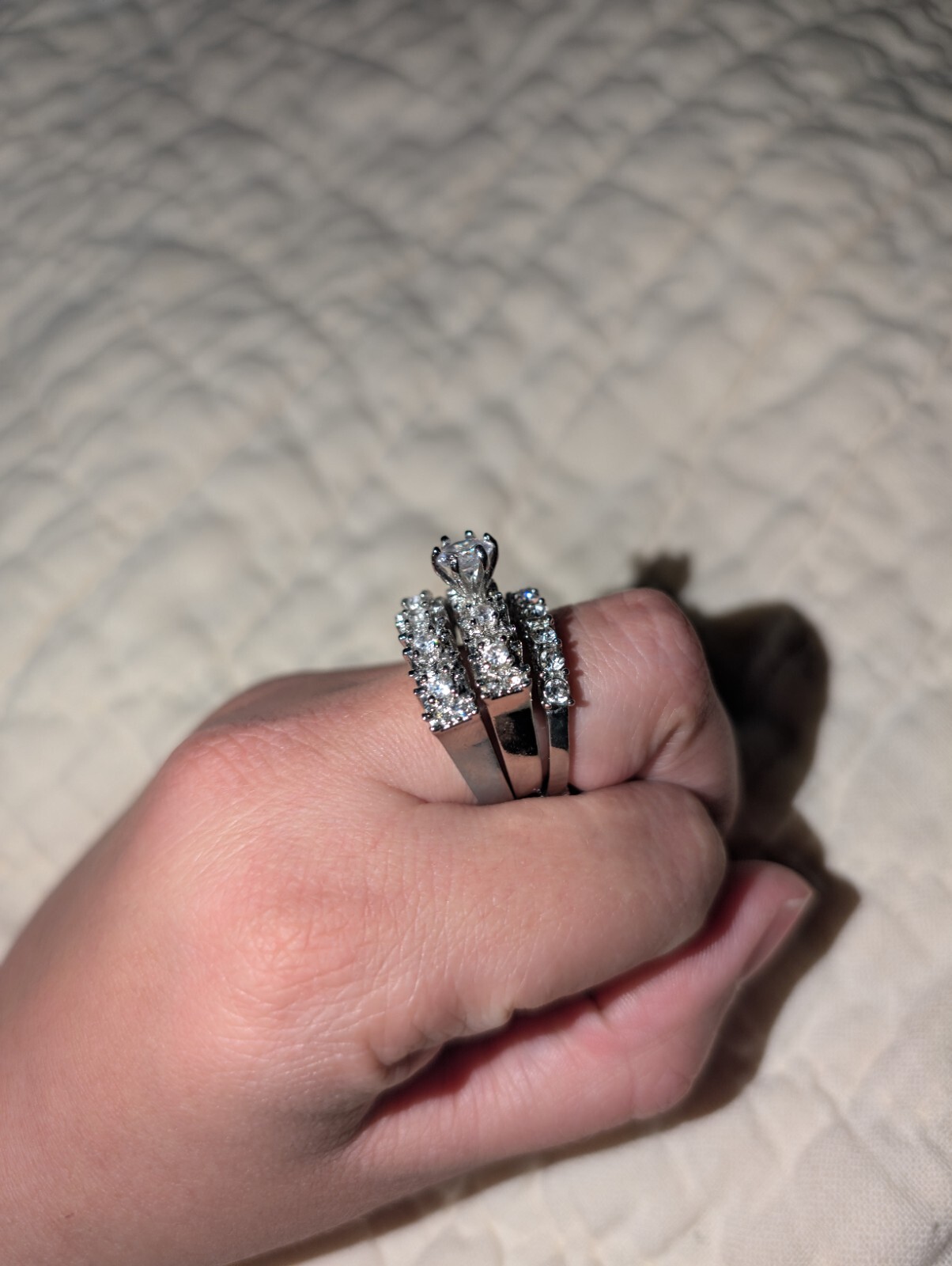 как выглядит 3 Piece Exquisite Halo Stacking Rings Travel Bridal Set Silver Zirconia фото