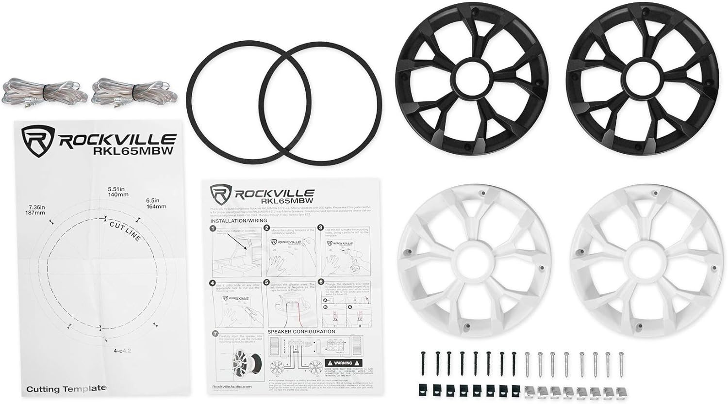 Model Name: Pair RKL65MBW 6.5" Marine Boat Speakers w/LED+Black/White Grille