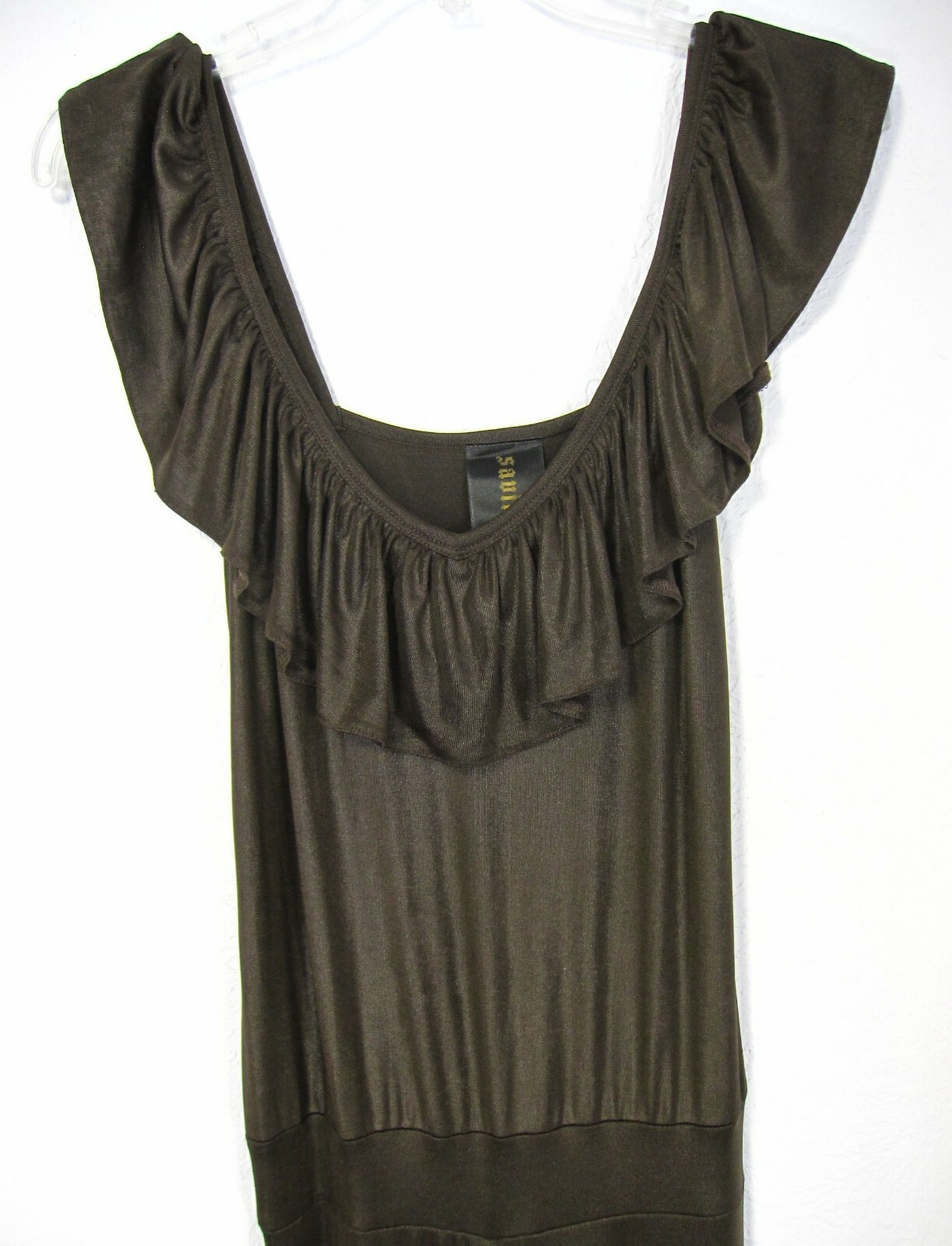 как выглядит SAVING NOLA SLEEVELESS JUMPSUIT Square Ruffled NECKLINE SIZE M Medium Brown фото