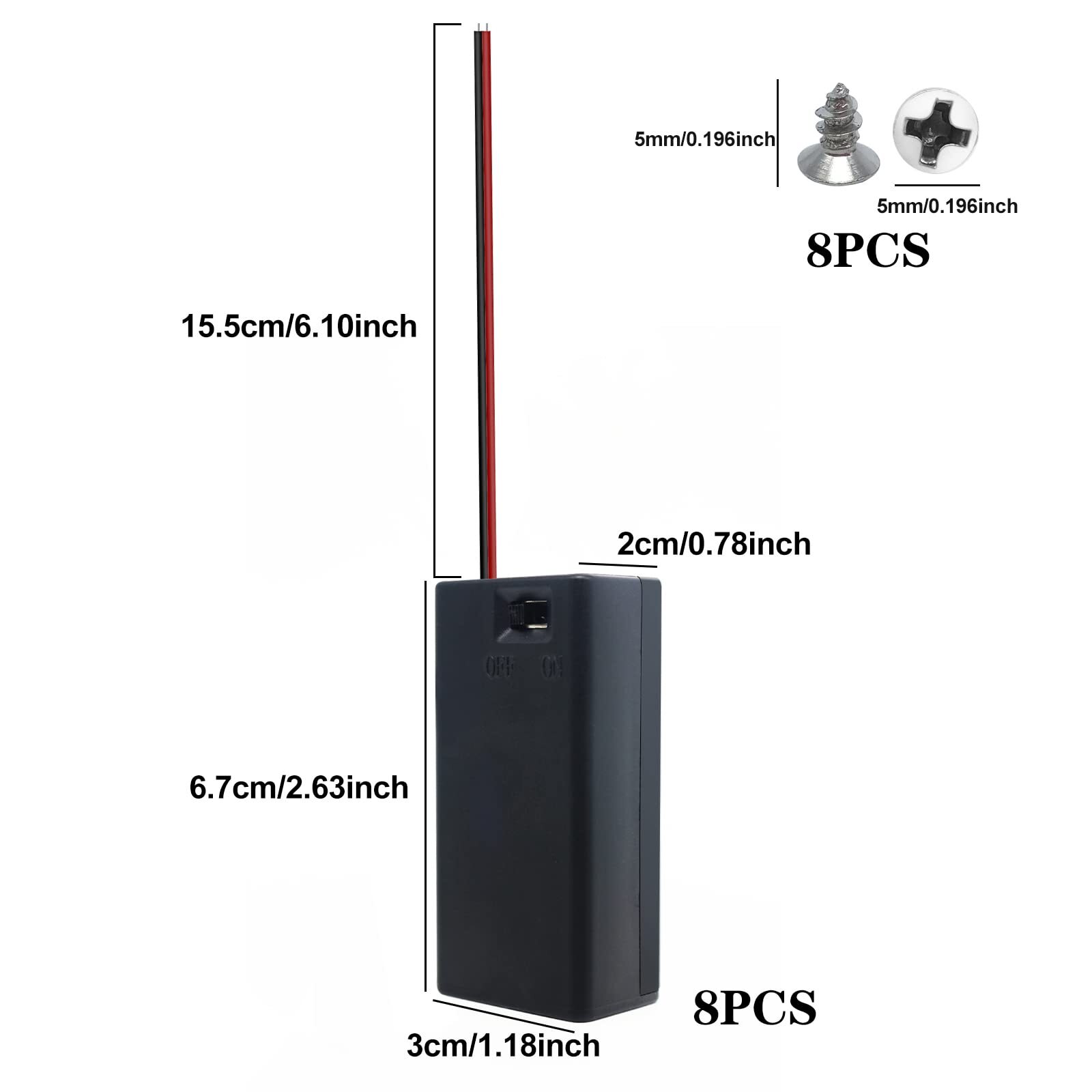 9V Battery Holder 9V Battery Case Pack of 8 9V Battery Box with ON/Off Switch...