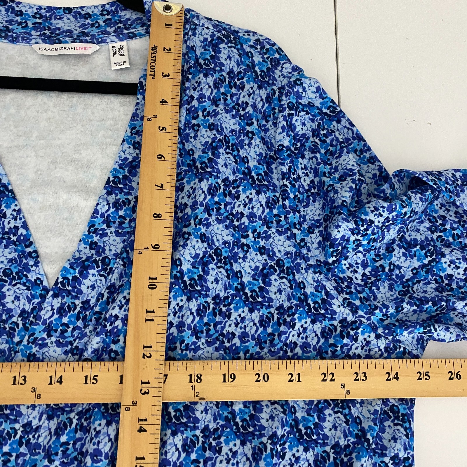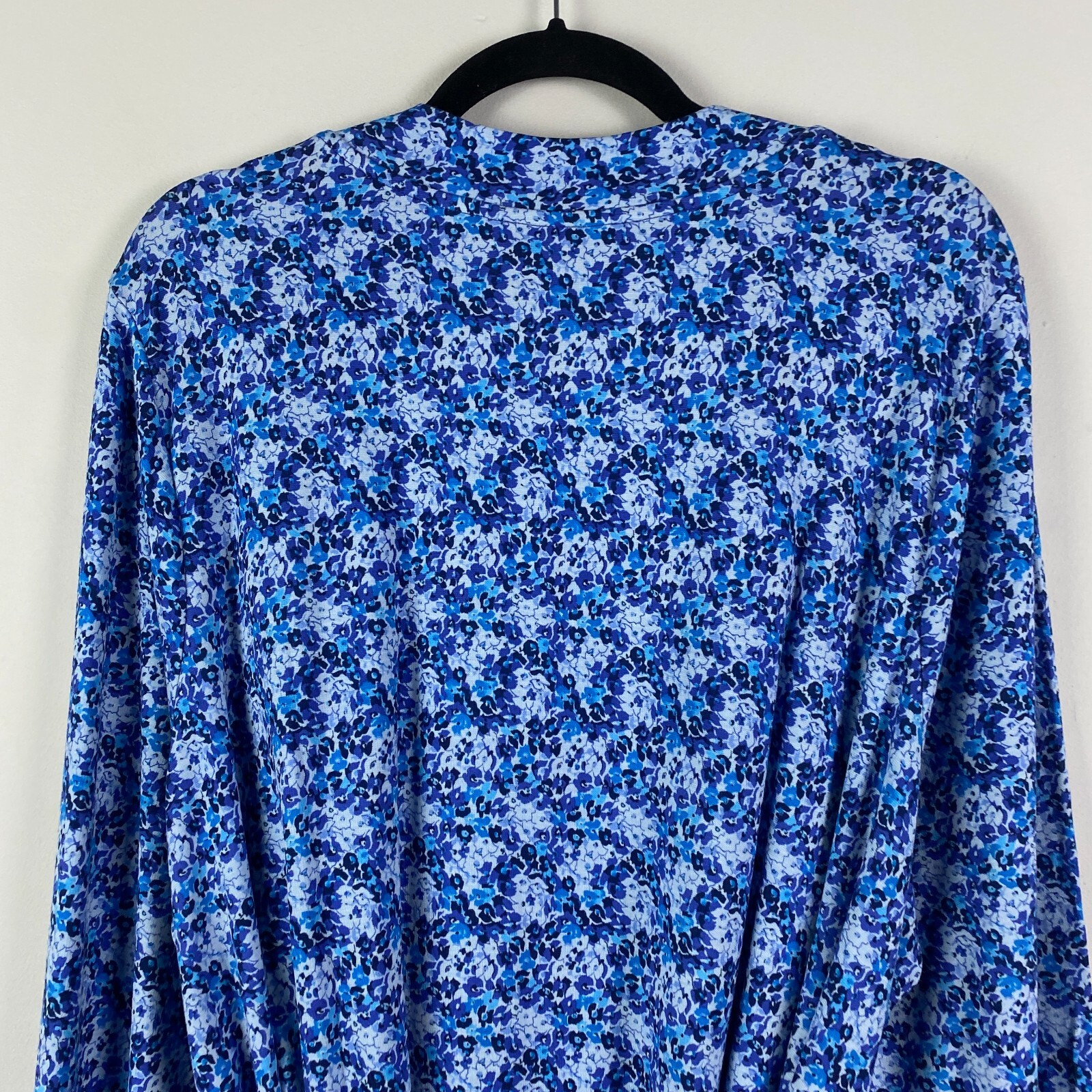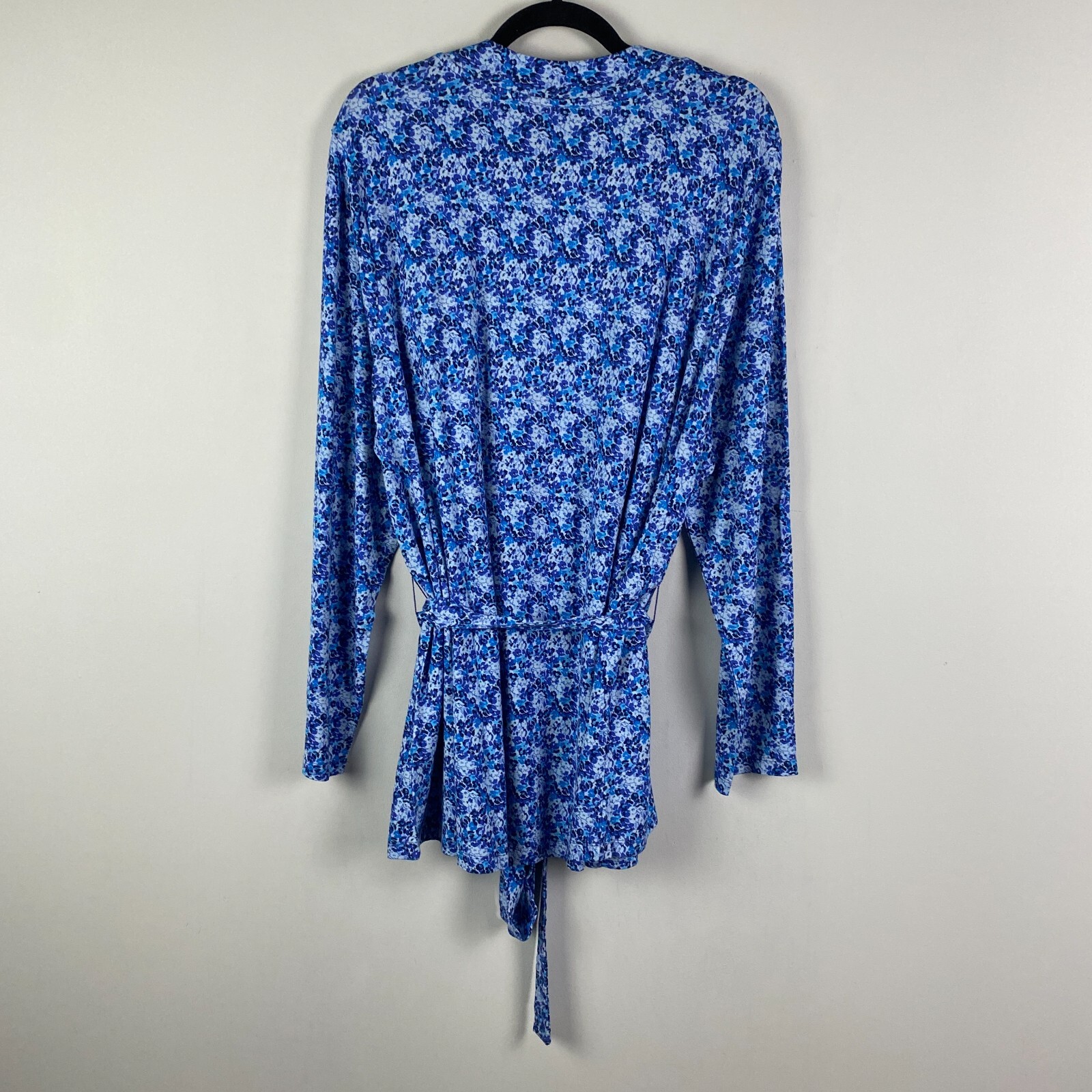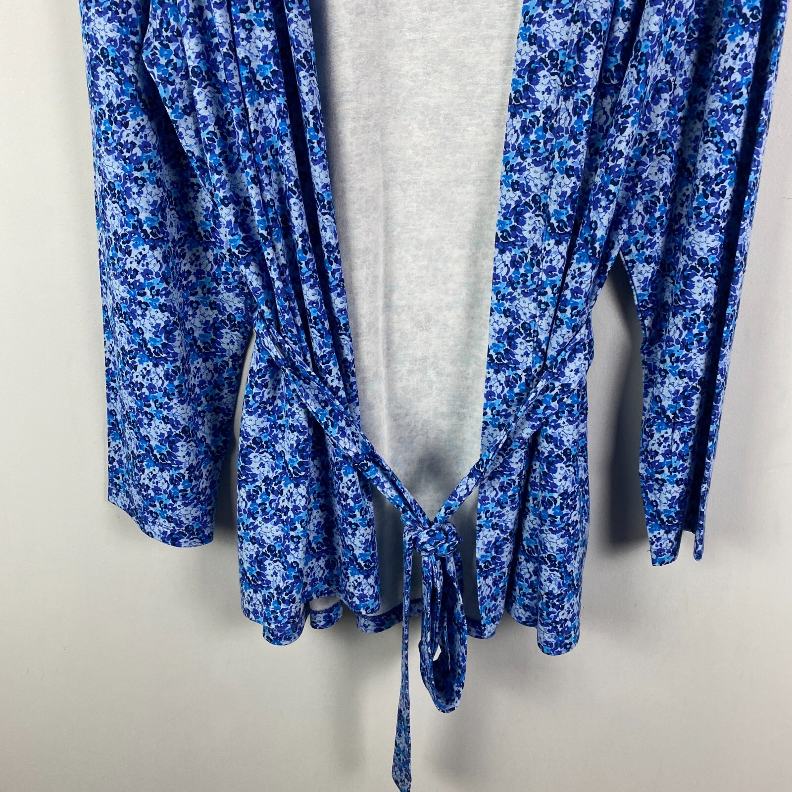 как выглядит Isaac Mizrahi Swing Cardigan with Self Tie Detail Size 2X Blue Floral Stretch фото