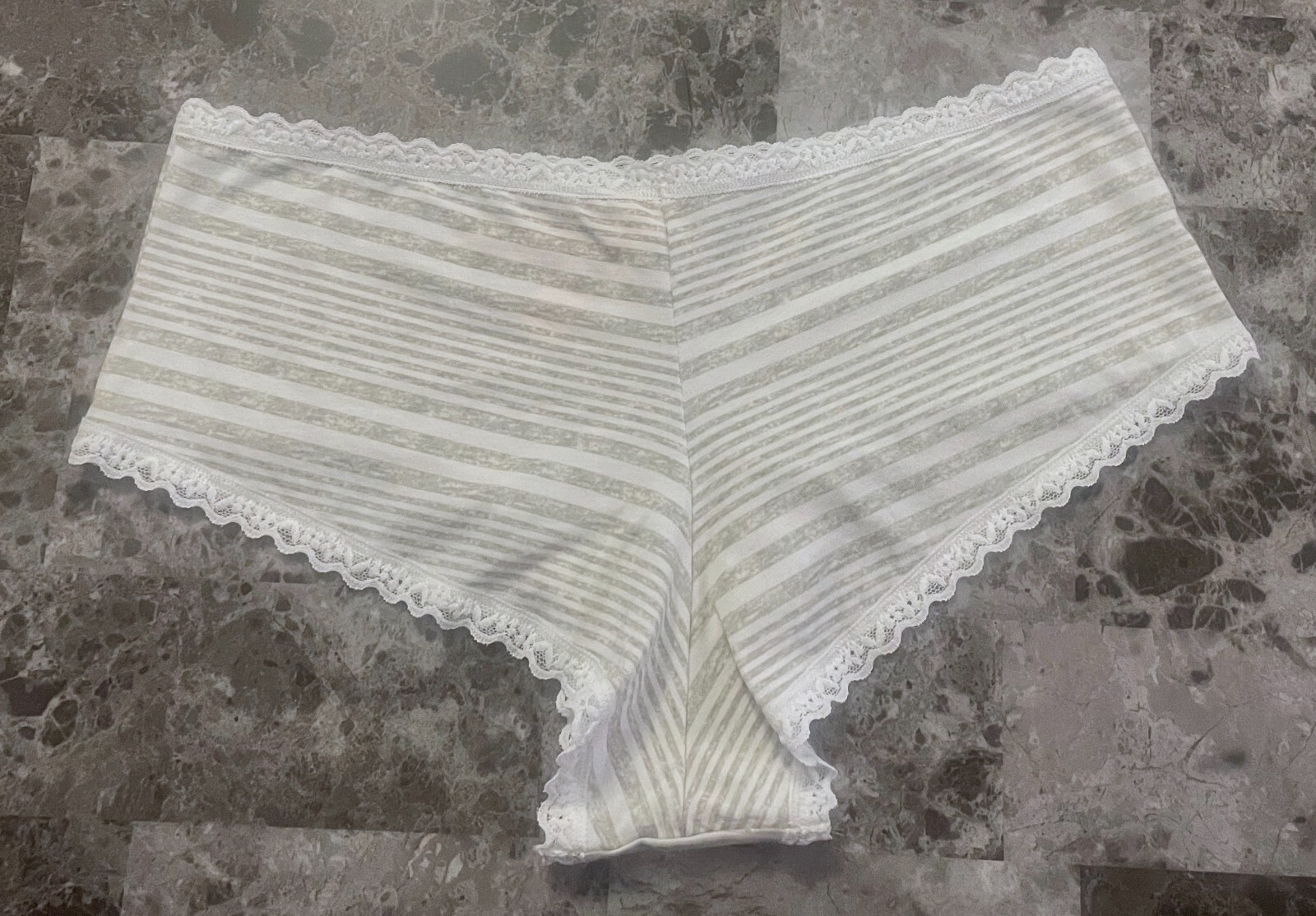 NWT VICTORIA'S SECRET LARGE WHITE GRAY STRIPE FLORAL LACE CHEEKY PANTIES