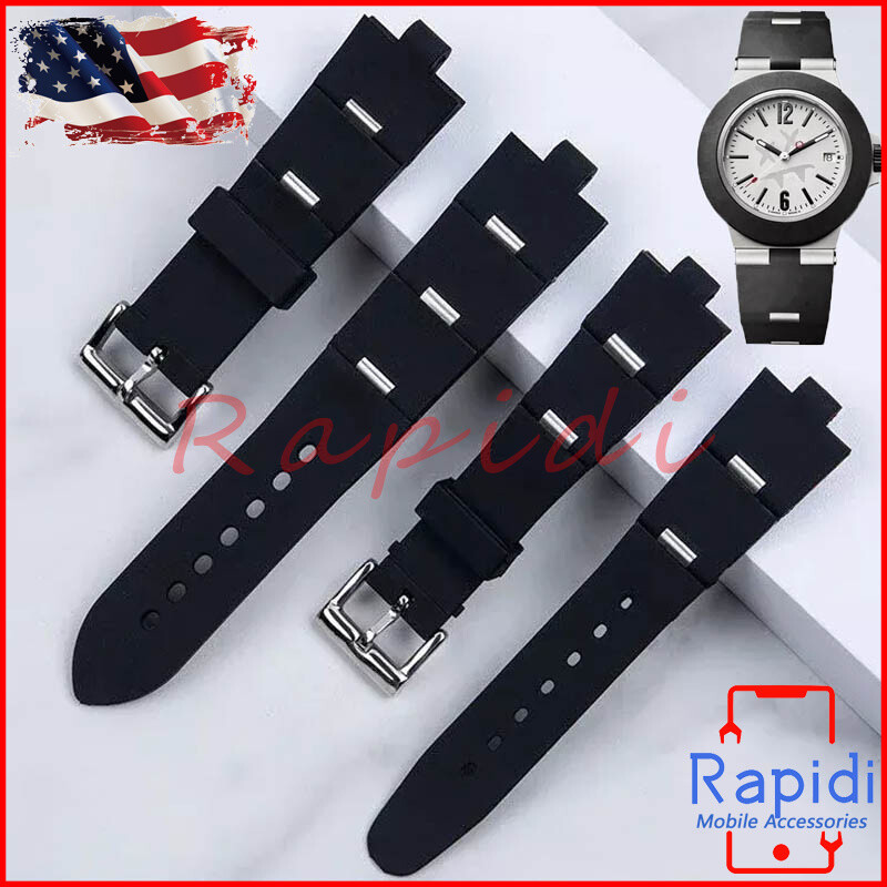 Fits For Bvlgari Diagono W/ Tool Black Silicone Rubber Watch Strap Band 8x24mm