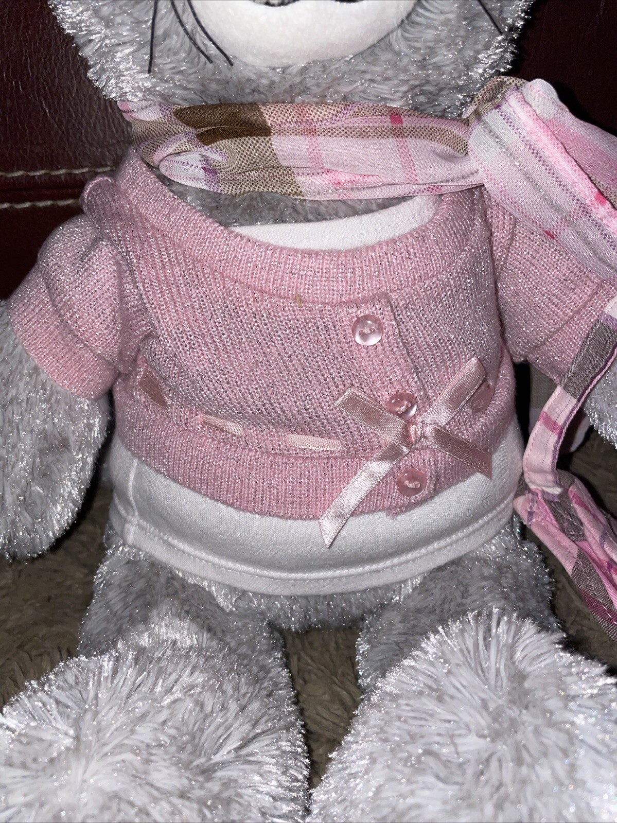 как выглядит Build a Bear retired Gray Kitty Cat 16" with a plaid pink outfit фото