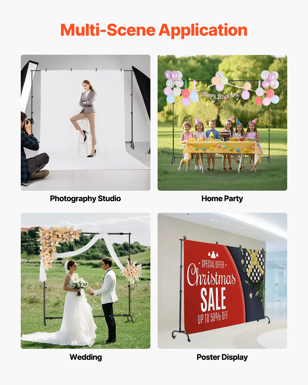 Backdrop Stand Background Stand Kit 5x6.5-12x10 ft for Party Photo Studio