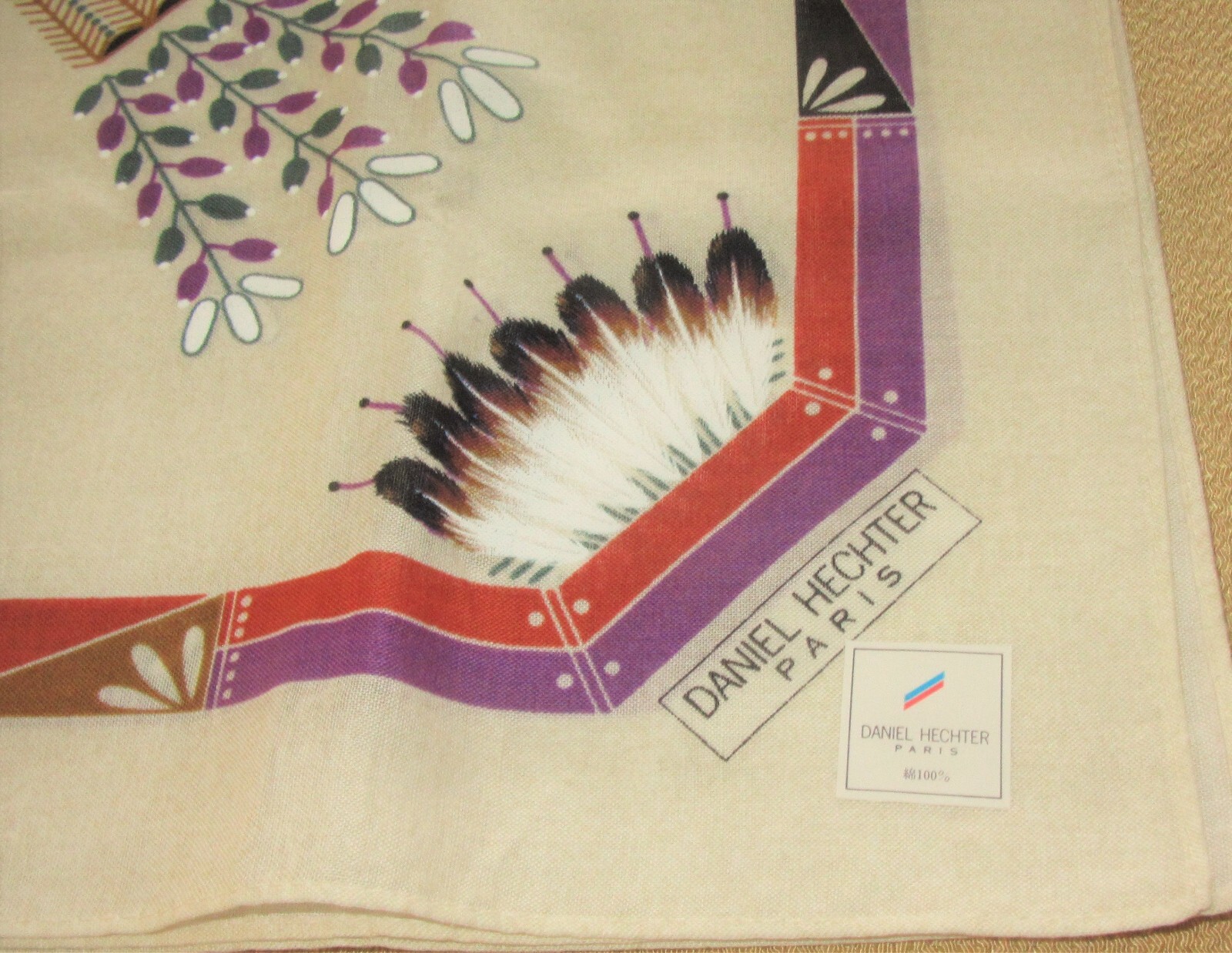 DANIEL HECHTER Feathers Scarf Handkerchief 51cm /MAIAGA