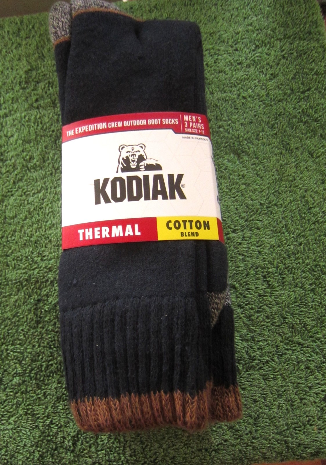 3 Pairs 3 Kodiak Thermal Cotton Blend Crew Socks 3 Pack Mens Shoe Size 7-12