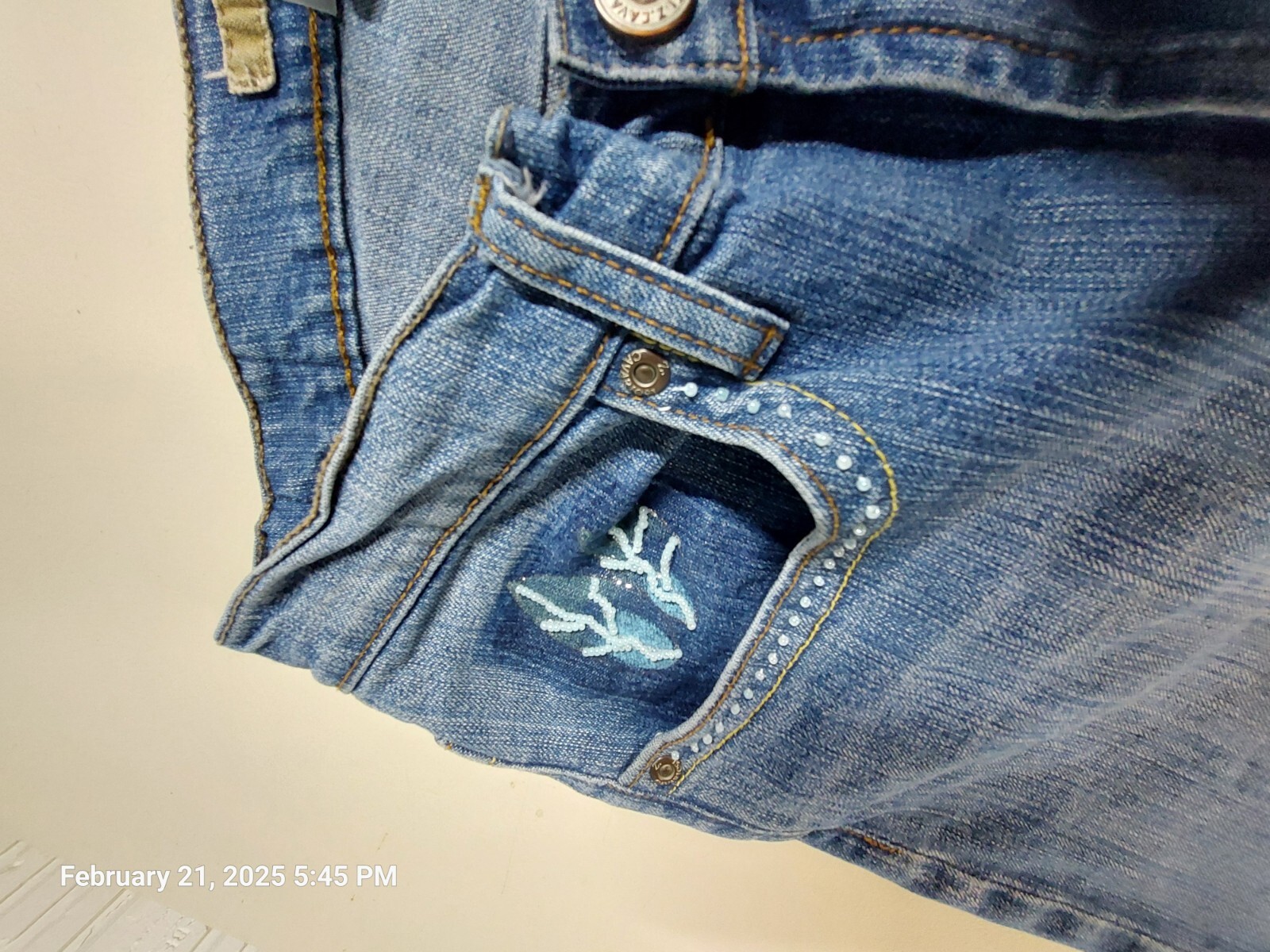 как выглядит Z. Cavaricci Vintage Y2K Floral Beaded Jeans Straight Sz 8 Hippie 90 s W28xL27 фото