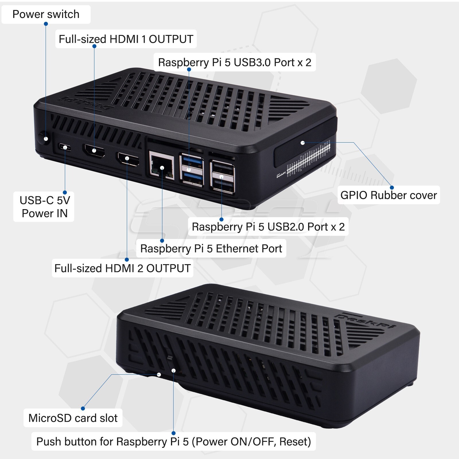DeskPi Lite Pi5 Case ABS Enlosure with Armor Lite V5 Support M.2 NVMe SSD