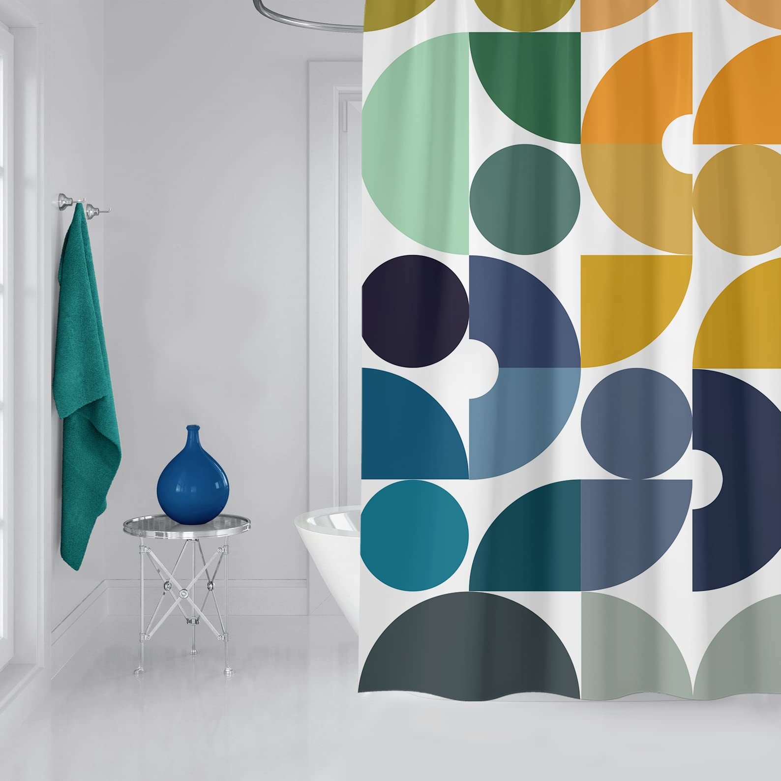 Kids Shower Curtain Colorful Rainbow Retro Fun Geometric Cute Teen Bright Pol...