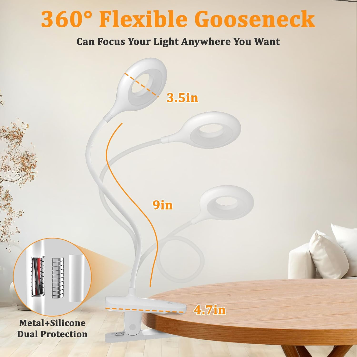 Clip on LED Reading Light, 25 Models USB Rechargeable Bed Lamp with Strong Clamp