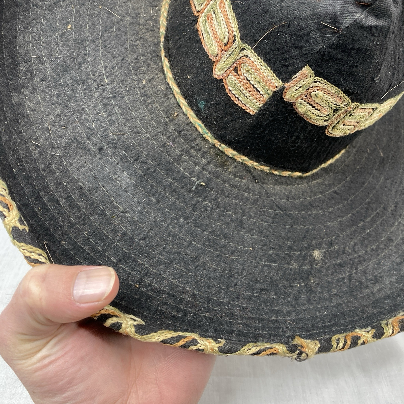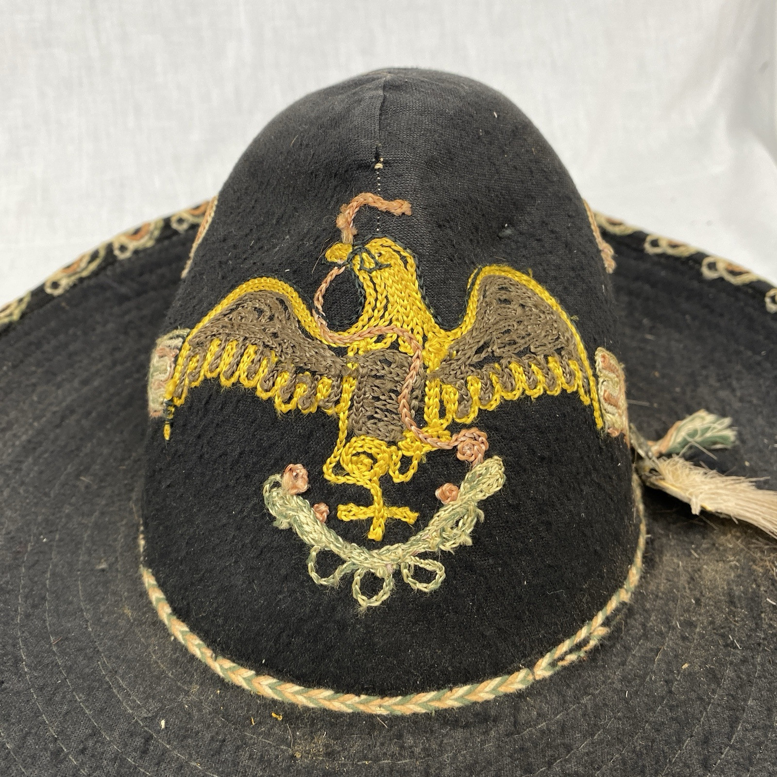 • Antique Mexican Sombrero Handmade Embroidered Eagle Centennial Felt Over Straw
