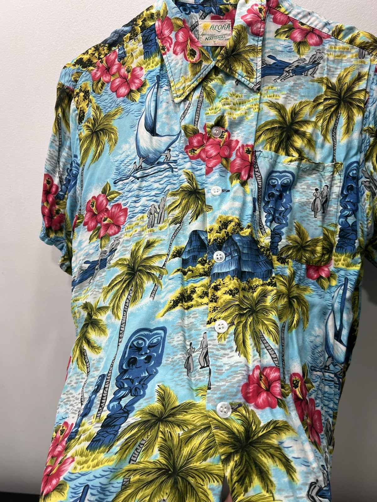 как выглядит 1960 s Rayon Aloha Shirt Loop Collar Sportswear Hawaiian 60s Made In Japan Sz M фото