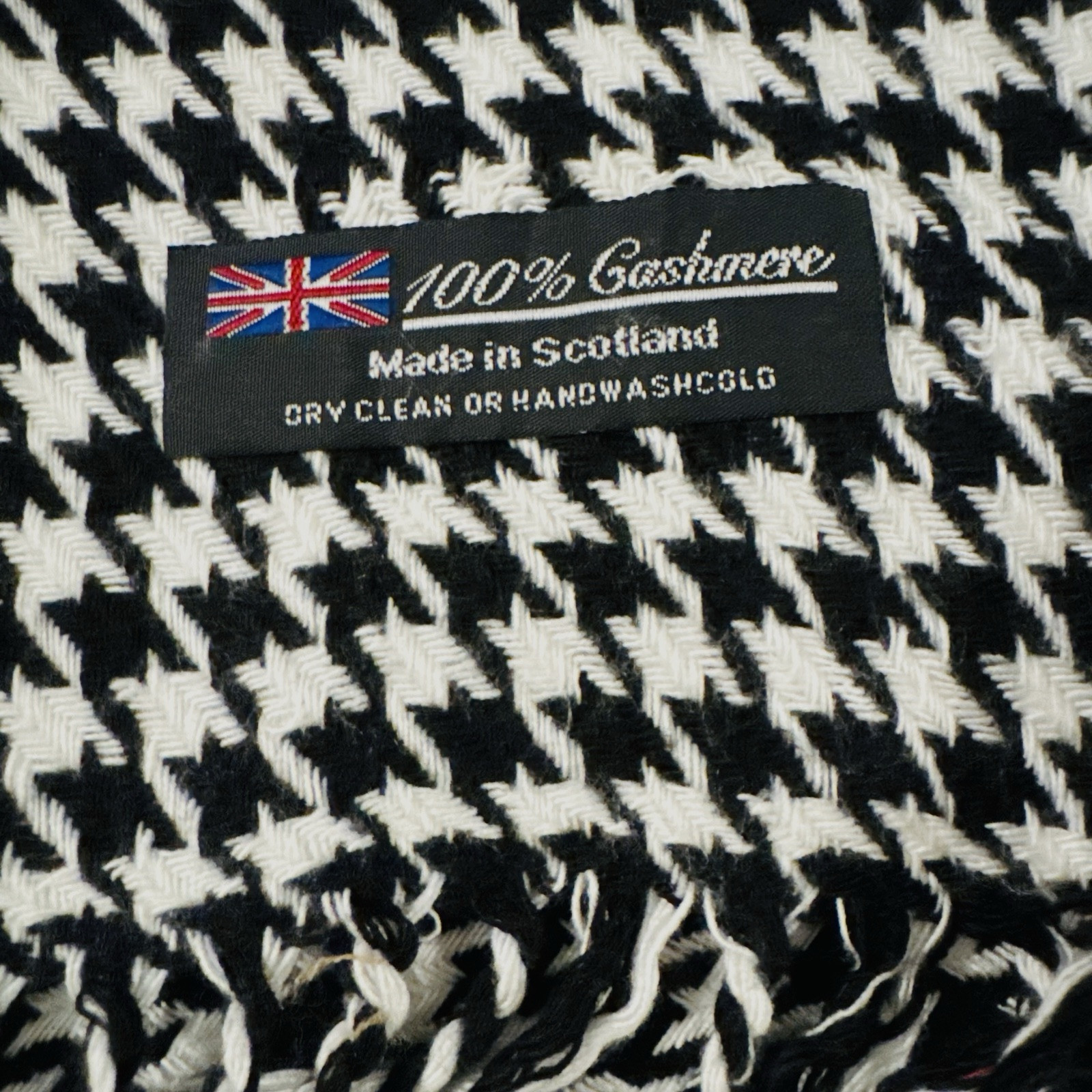 Houndstooth Plaid 100 Cashmere Made in Scotland Scarf with Fringe