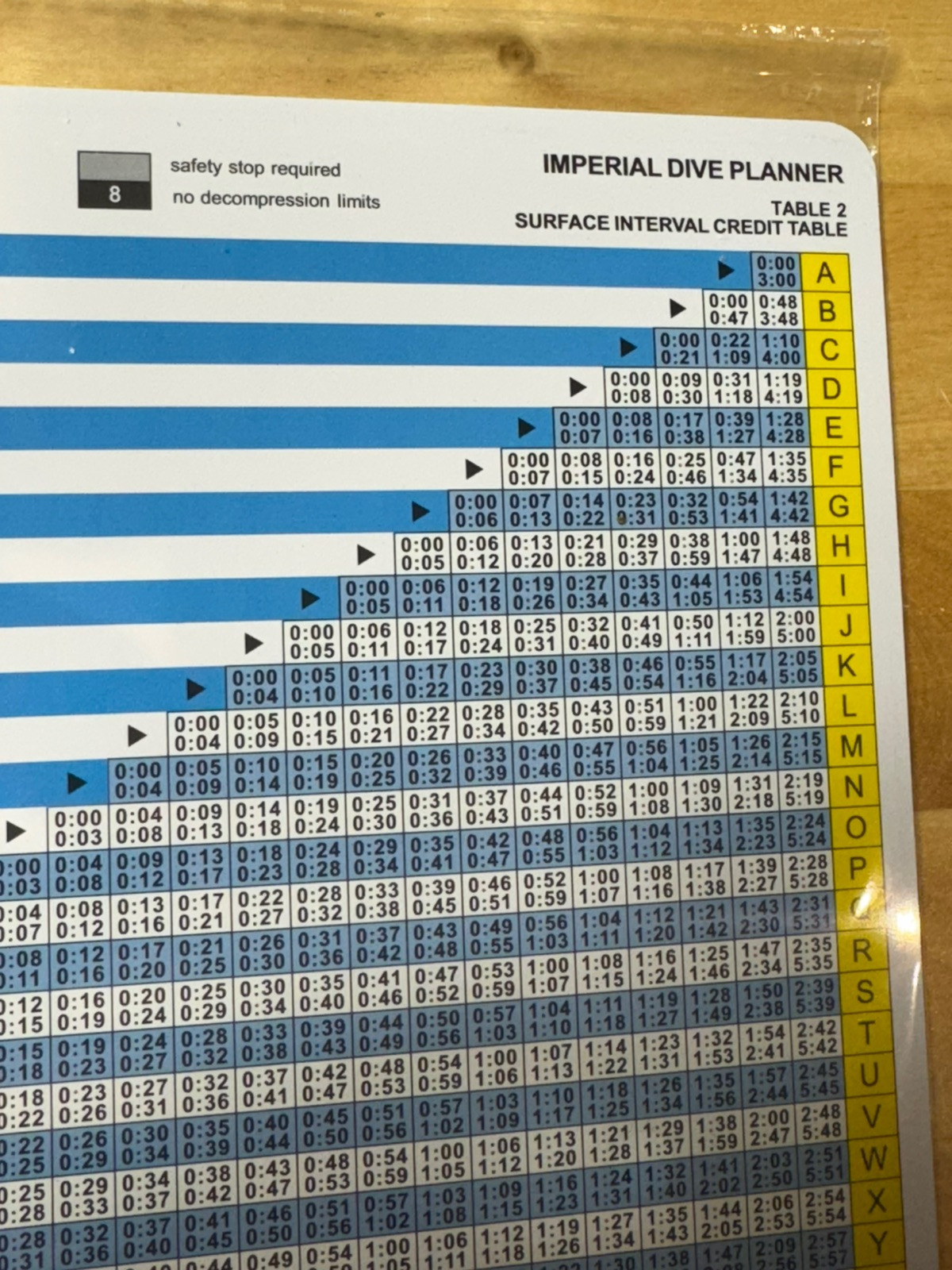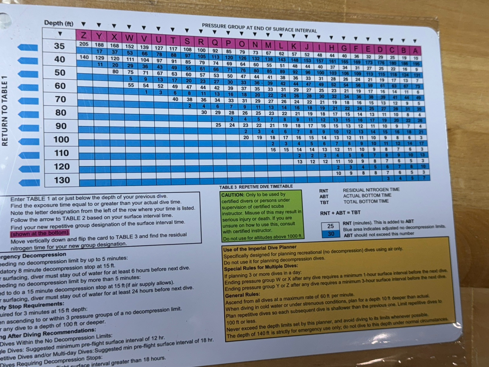Imperial Dive Planner Plastic Recreational Table for Scuba NEW