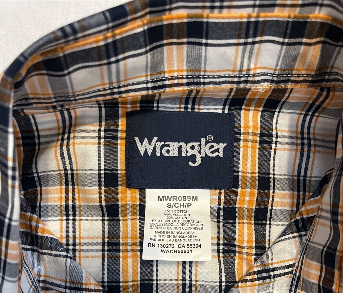 Wrangler Wrinkle Resist Plaid Pearl Snap Long Sleeve Western Shirt Men's Small