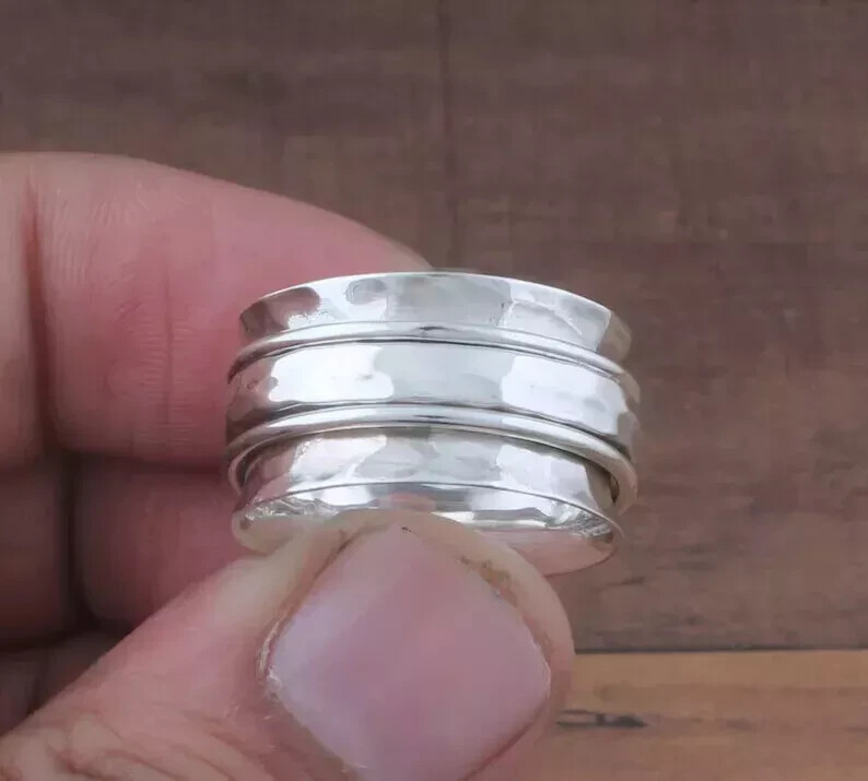 Solid 925 Sterling Silver Three Spinner Band Ring Handmade Gift Ring All Size