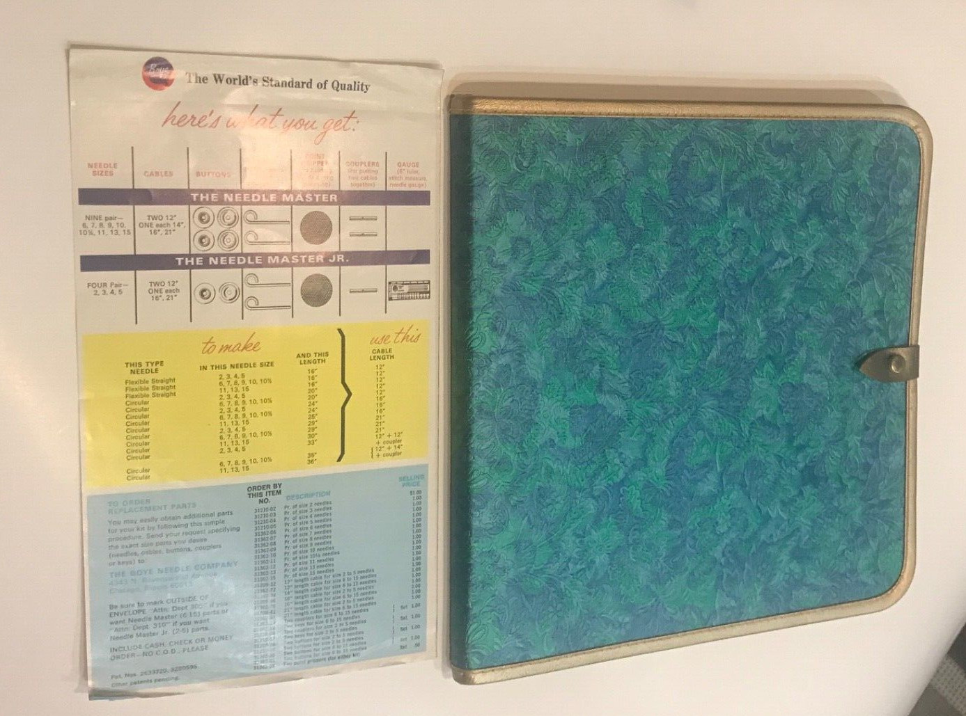Boye Needle Master Knitting Needle Kit Vintage '60s in Blue Green case instr