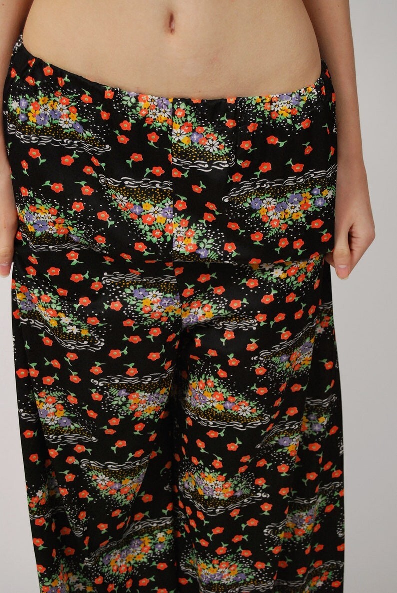 70s Palazzo Pants XS-XL vintage black floral print wide leg hippy boho baggy
