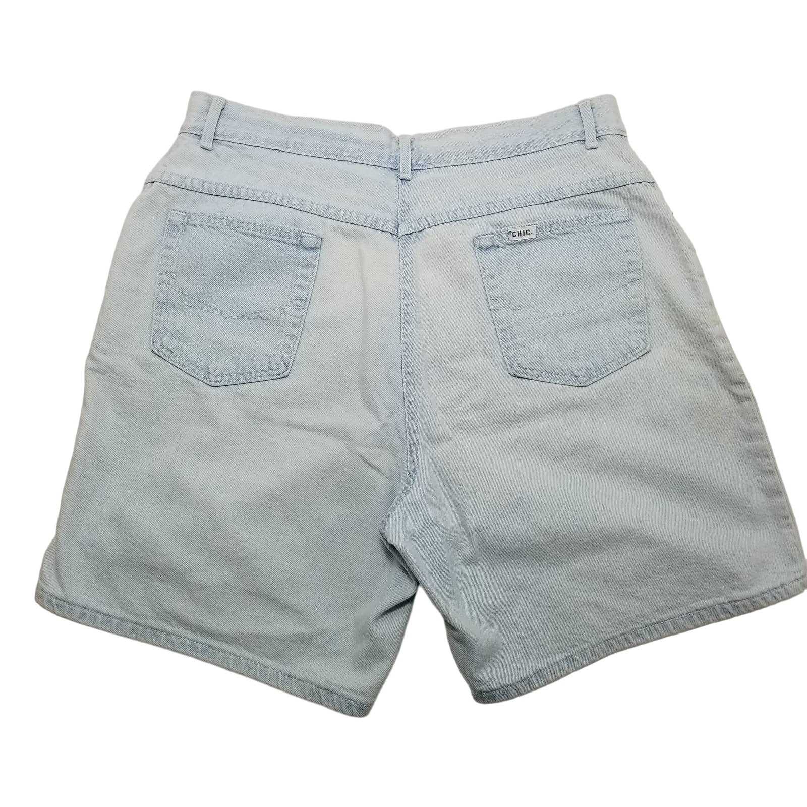 как выглядит Vintage Chic 80s 90s High Rise Baggy Denim Shorts 7 in Inseam 32" Light Wash фото
