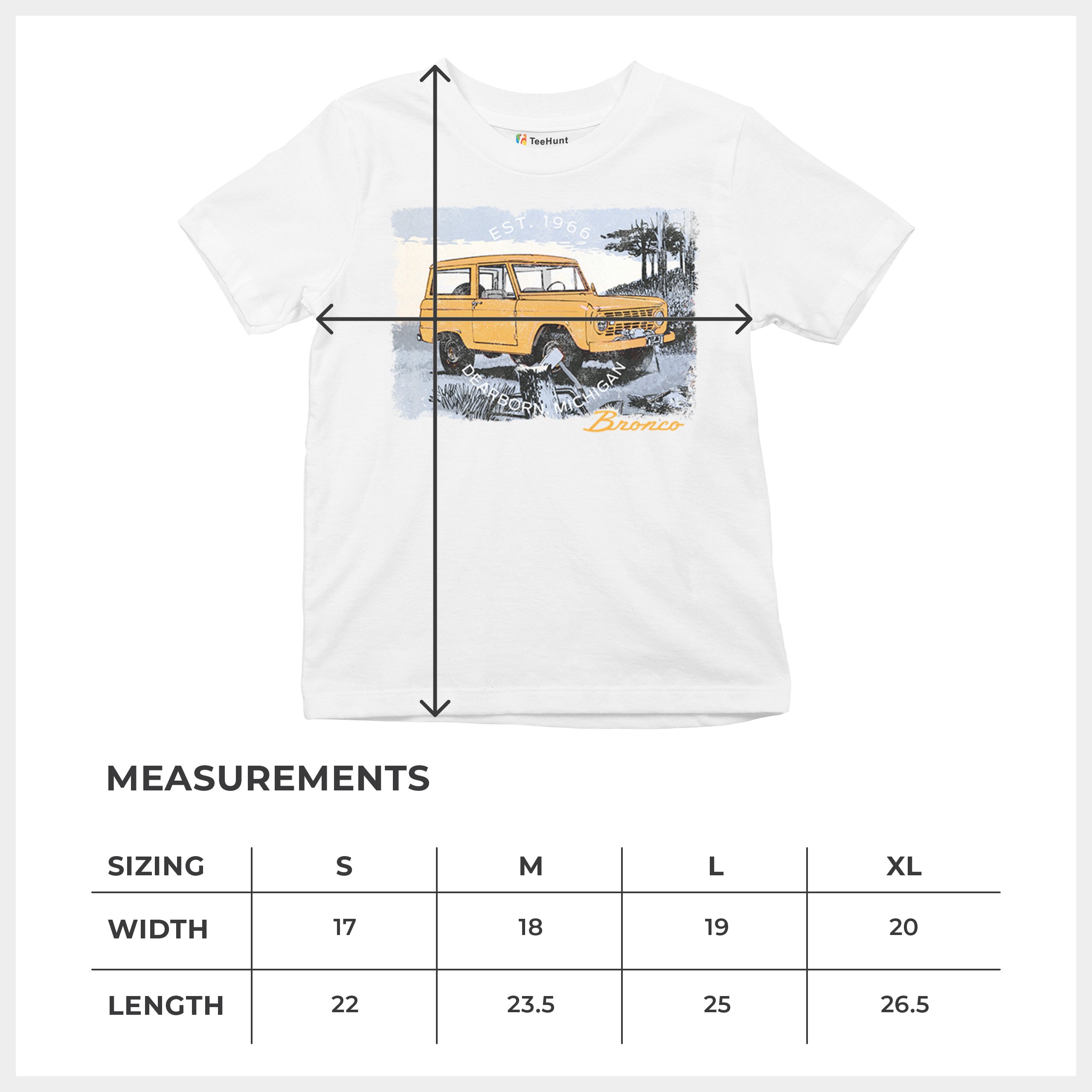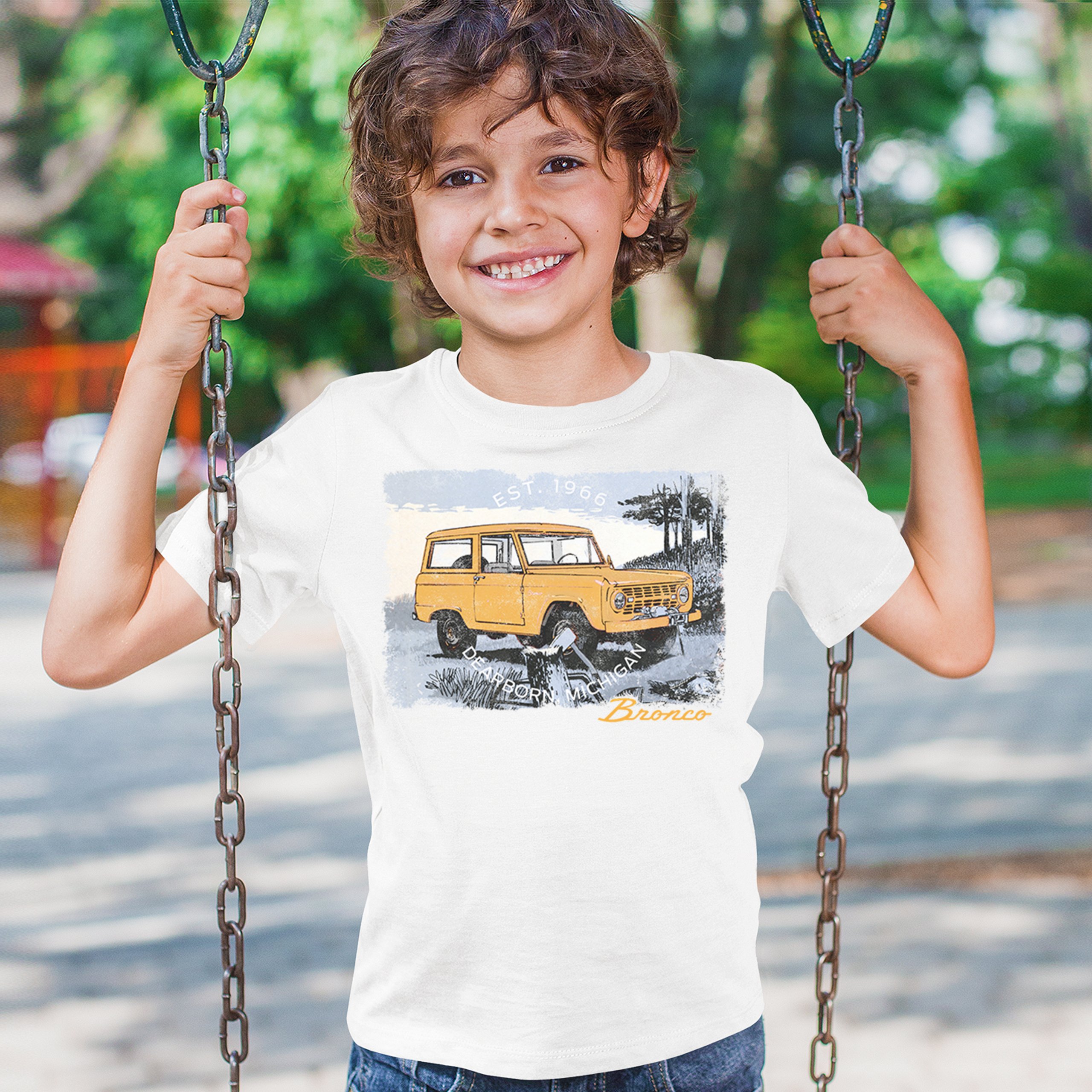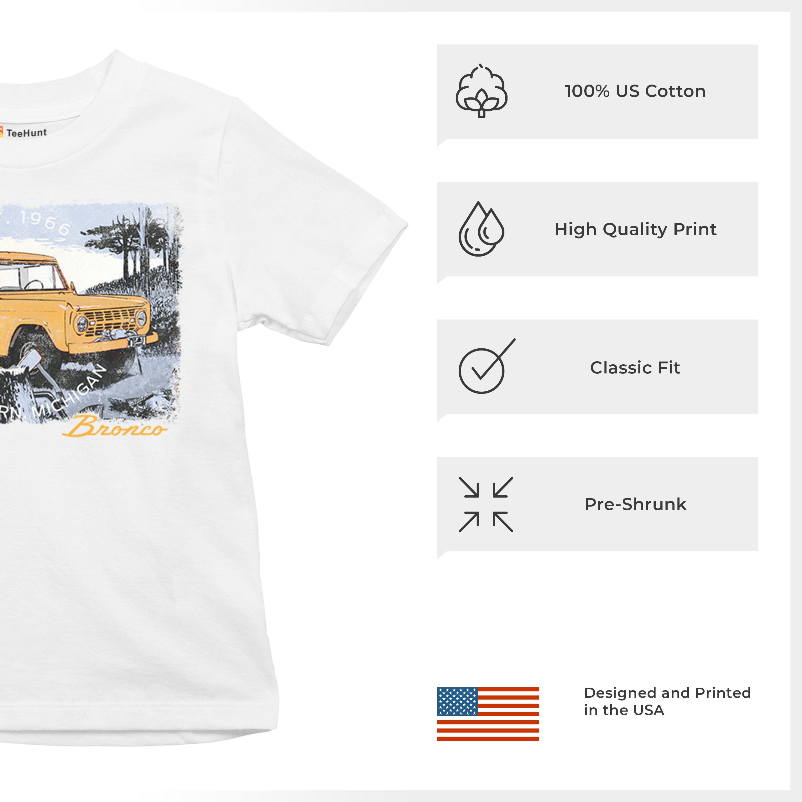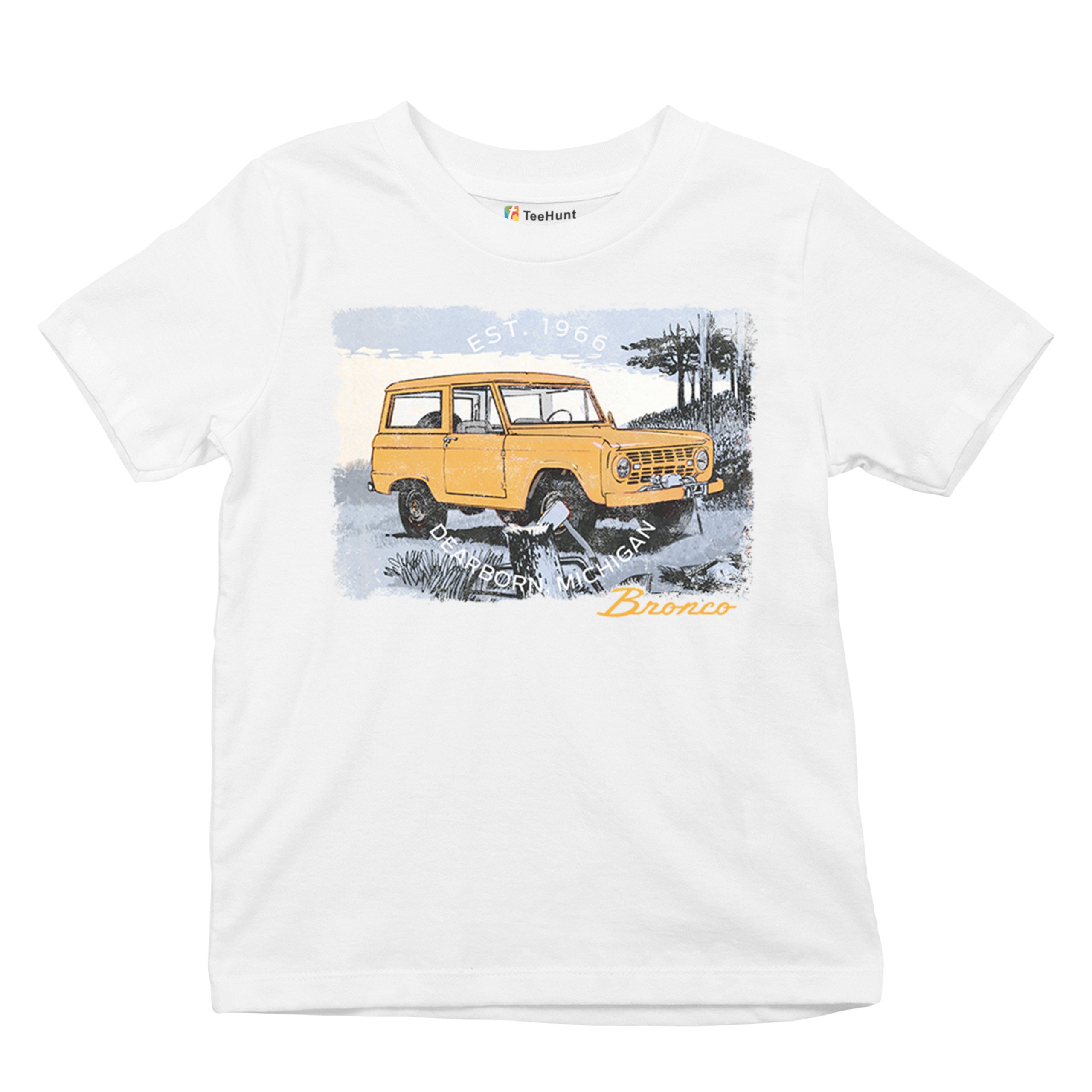Yellow Ford Bronco Dearborn Michigan 1966 Youth T-shirt Vintage Truck 4x4 Kids