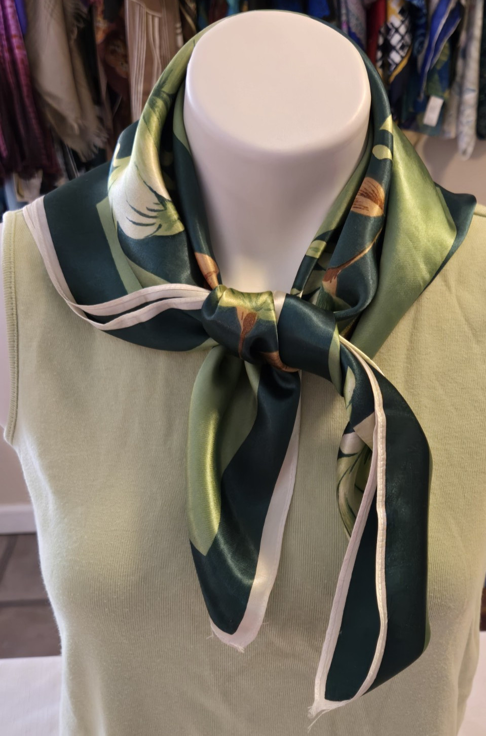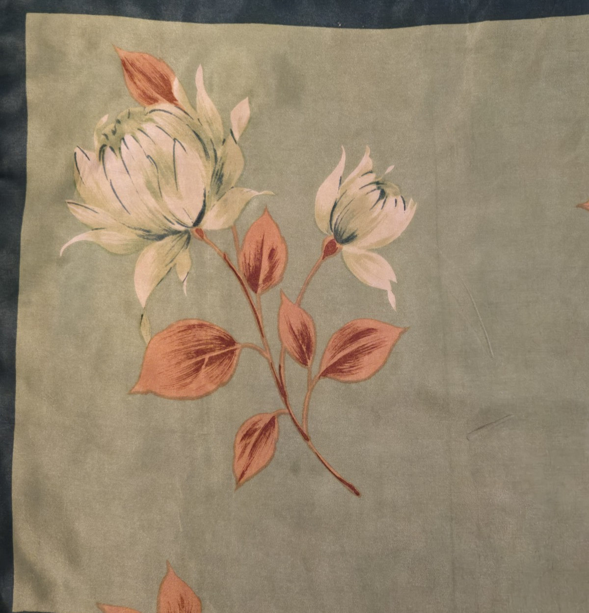 как выглядит VINTAGE Scarf Floral Polyester  Flowers Green Beige Rust Square 26" фото
