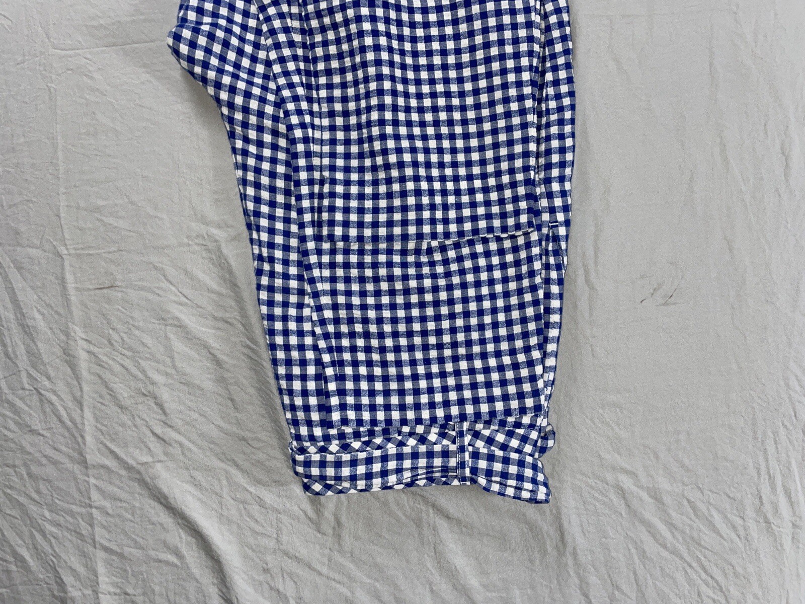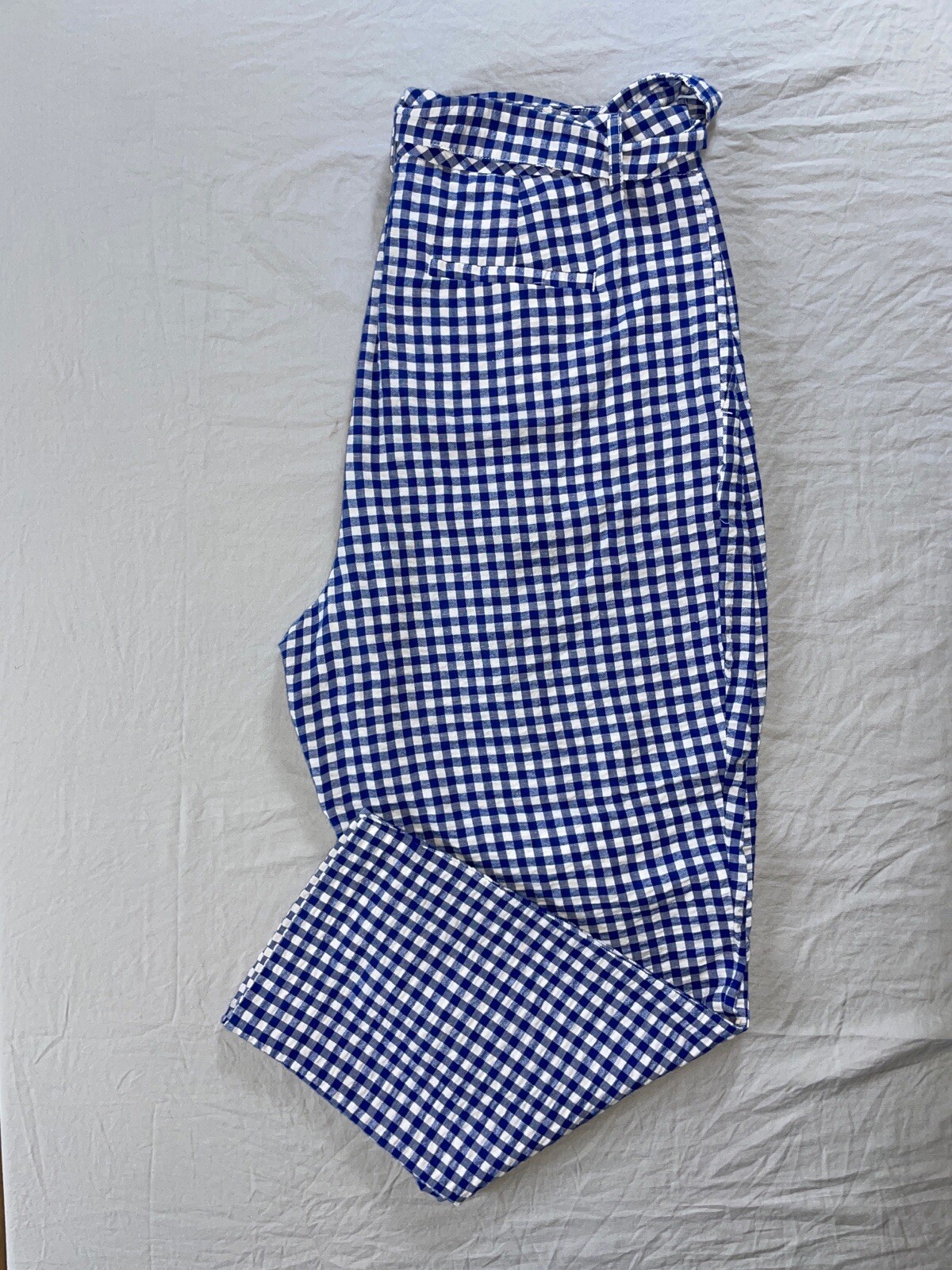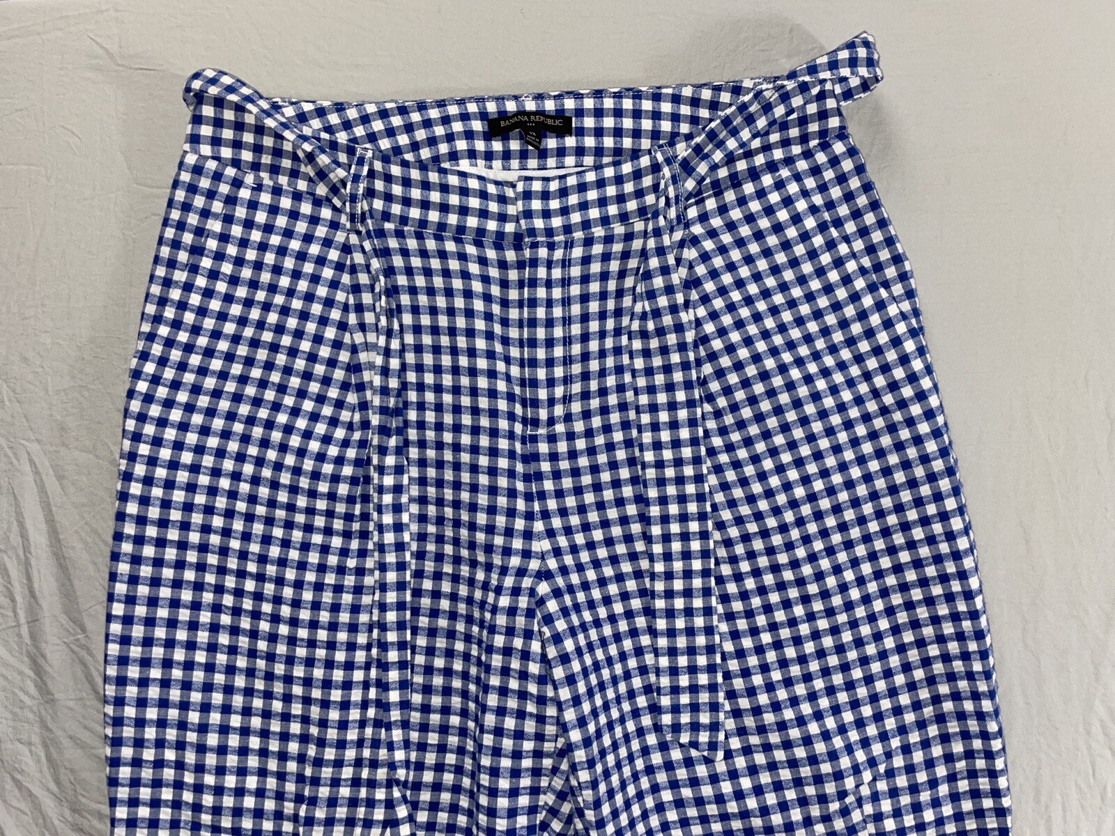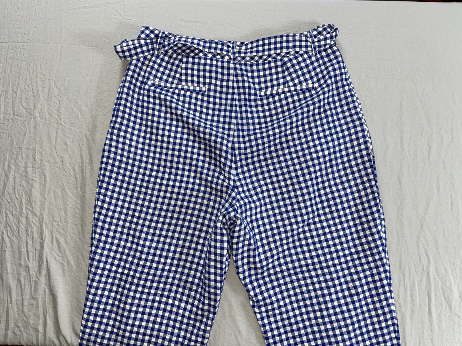 Banana Republic Women's Relaxed Taper Belted Linen Blend Pants. Blue Check, 12.