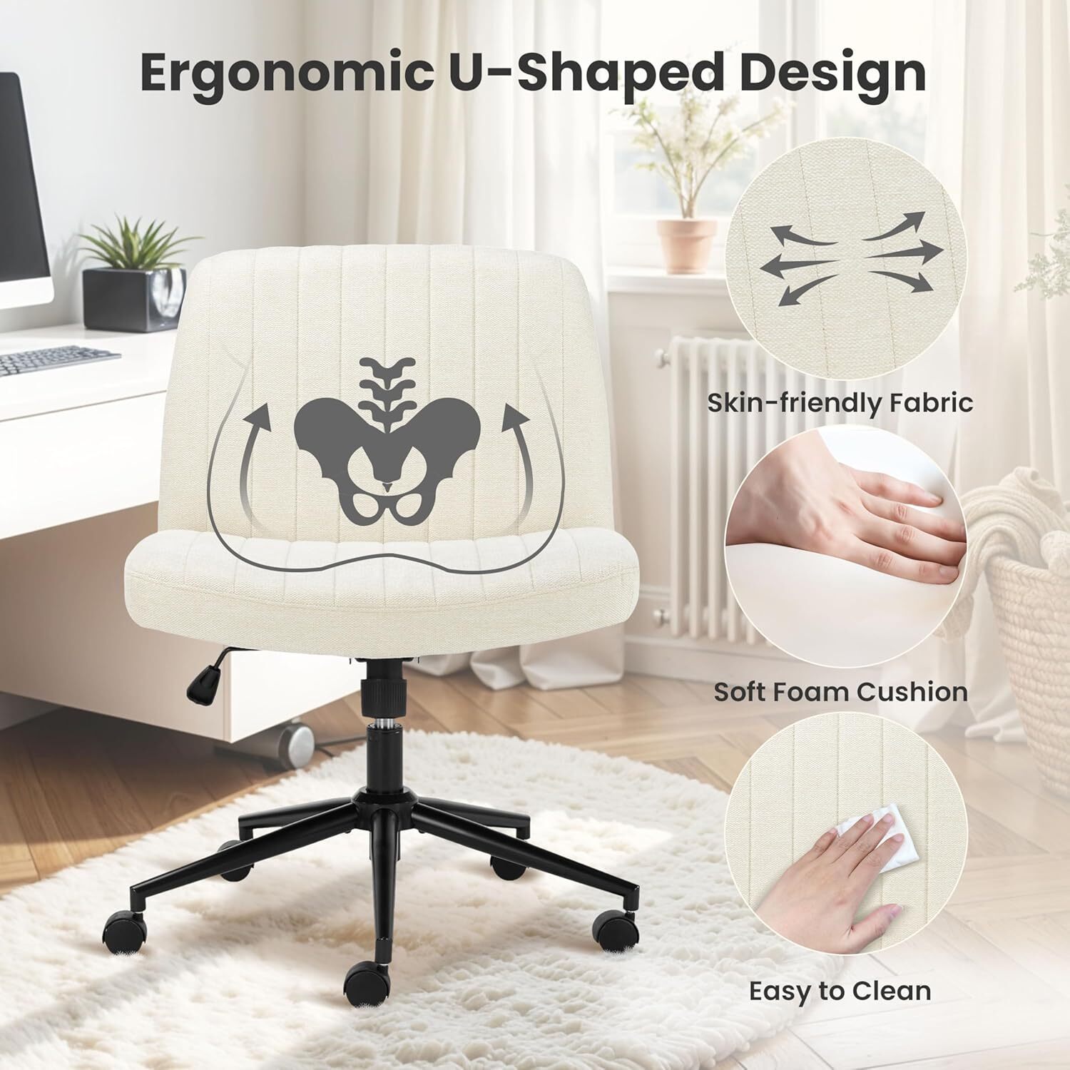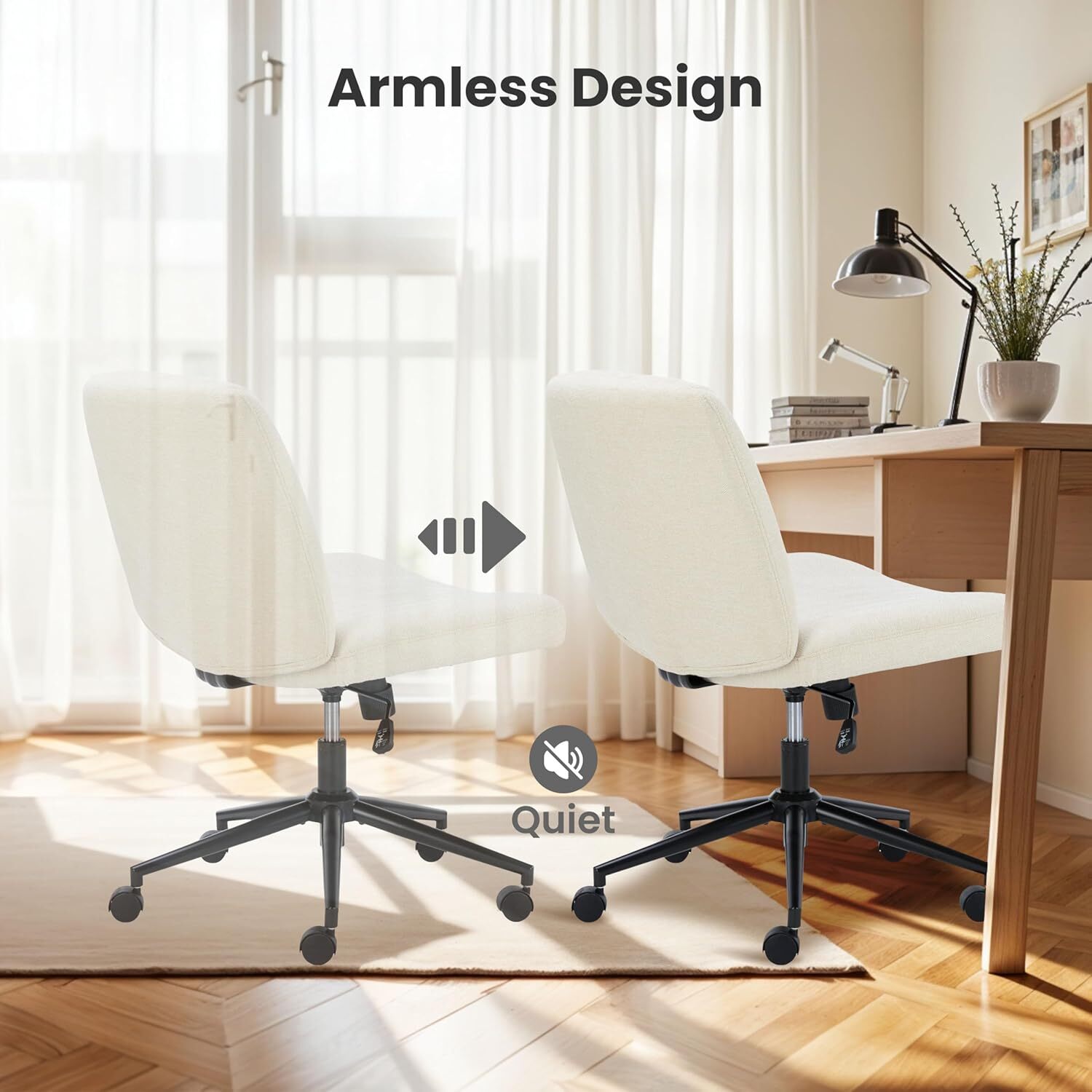 Adjustable Comfort: With our armless desk chair that features a 360° swivel seat. Des