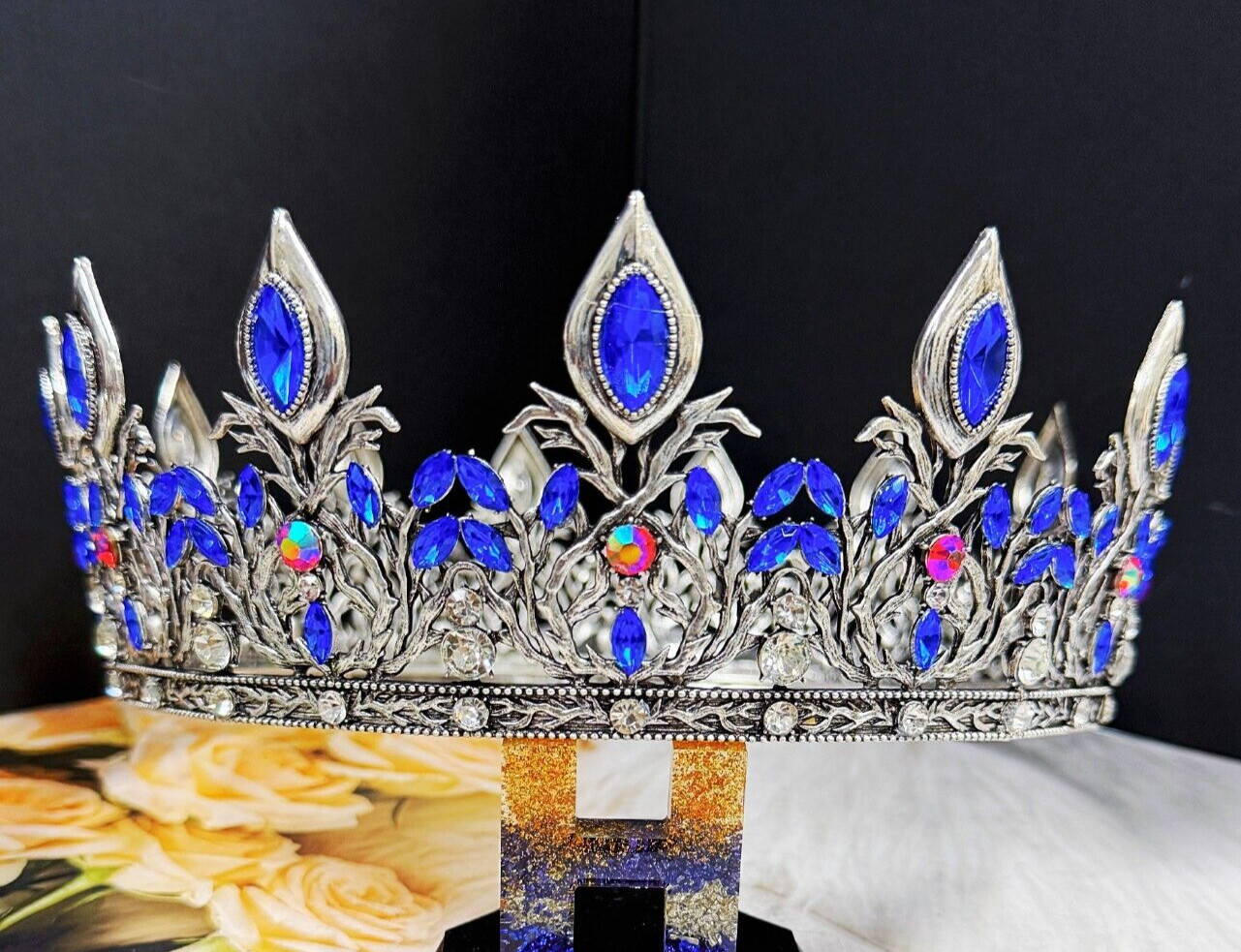 Royal Prince Diadem, Blue Crystal Medieval, Men's Crown, Regal Silver Crown