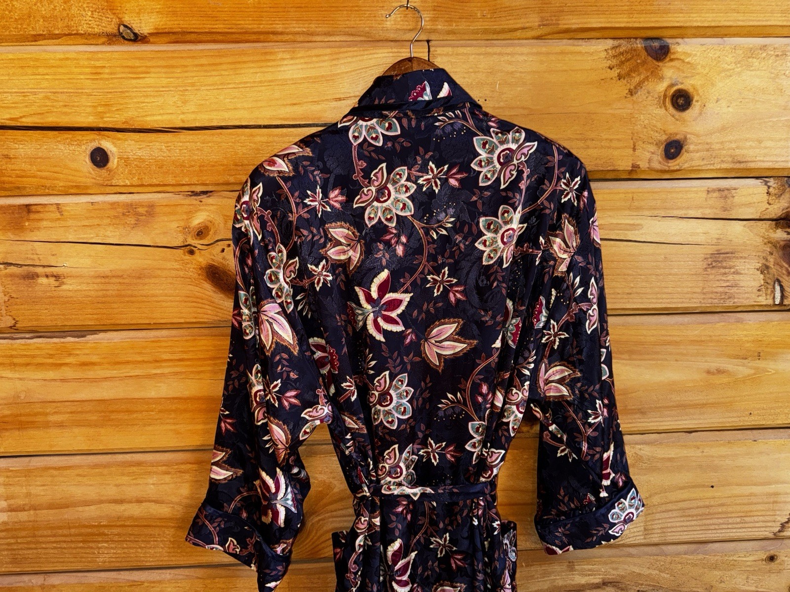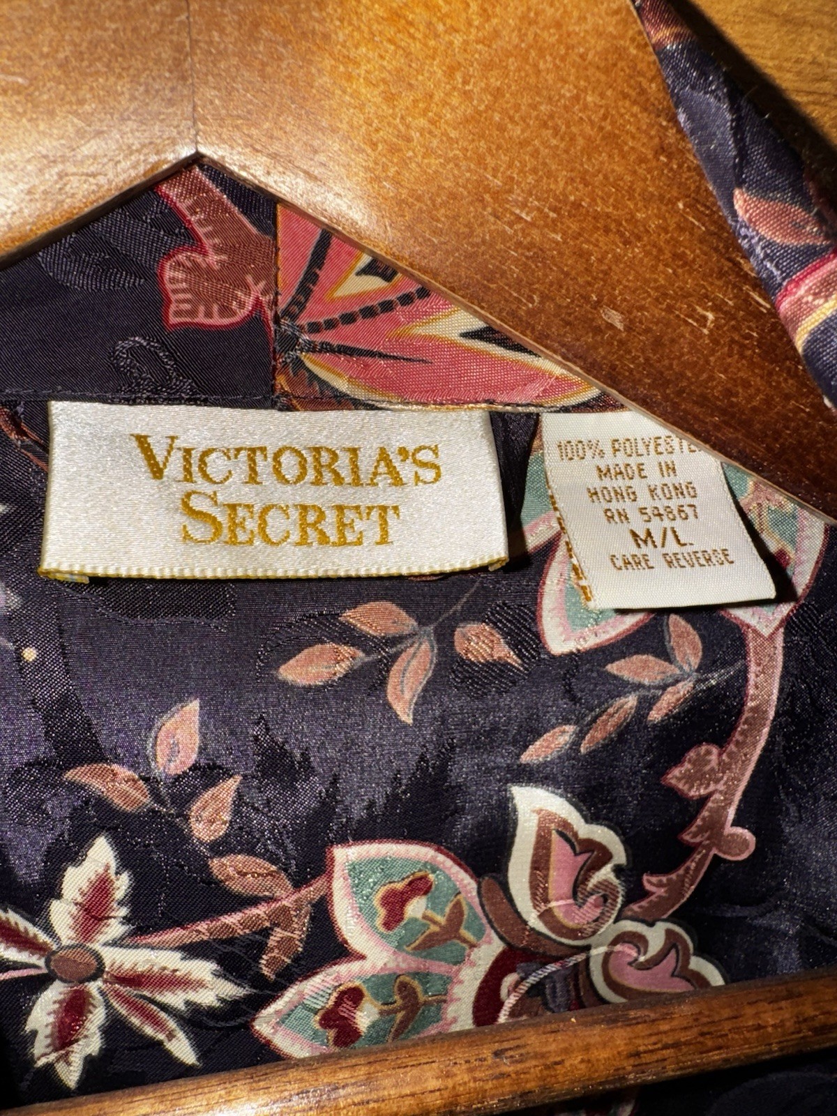 как выглядит Victorias Secret Vintage Gold Label Robe Pockets Navy Floral Sz M/L фото