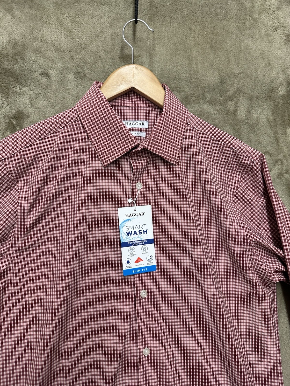 Haggar Shirt Mens 15 - 15.5 Red squared Classic Fit Button Up Dress Shirt NEW