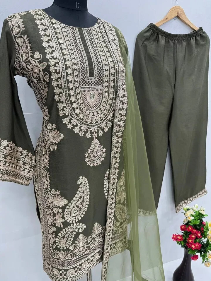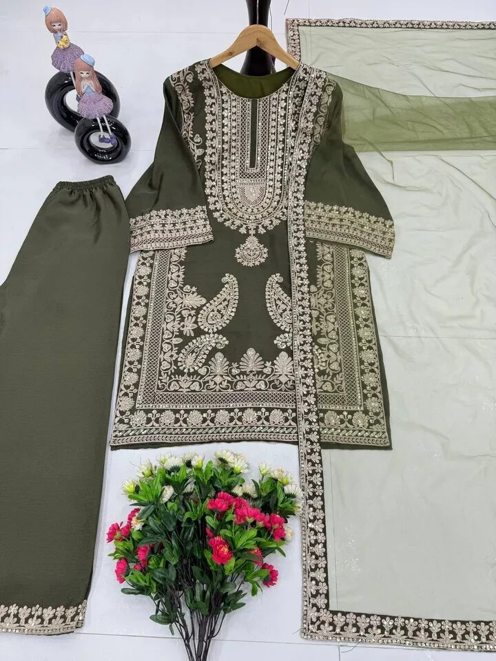 Indian Style Designer Heavy Chinnon Silk Palazzo Suit With Dupatta For Girls