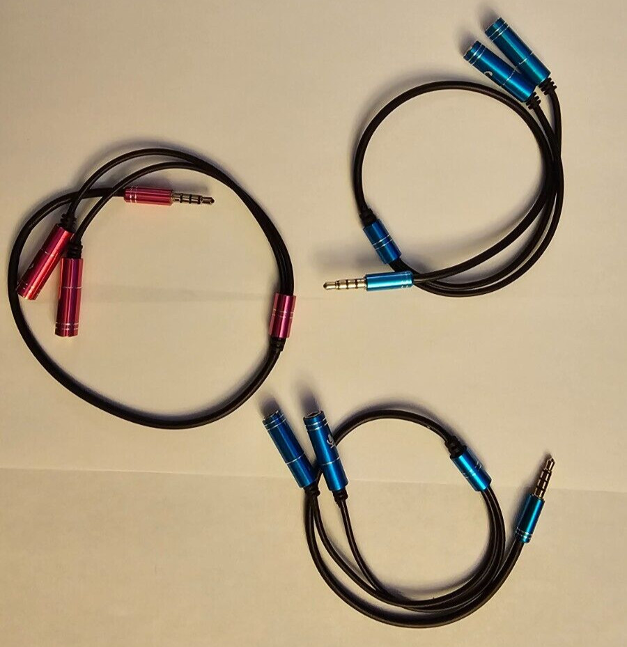 3x 3.5mm Audio Mic Y Splitter Cable Cord Headphone Adapter Female to 2 Male
