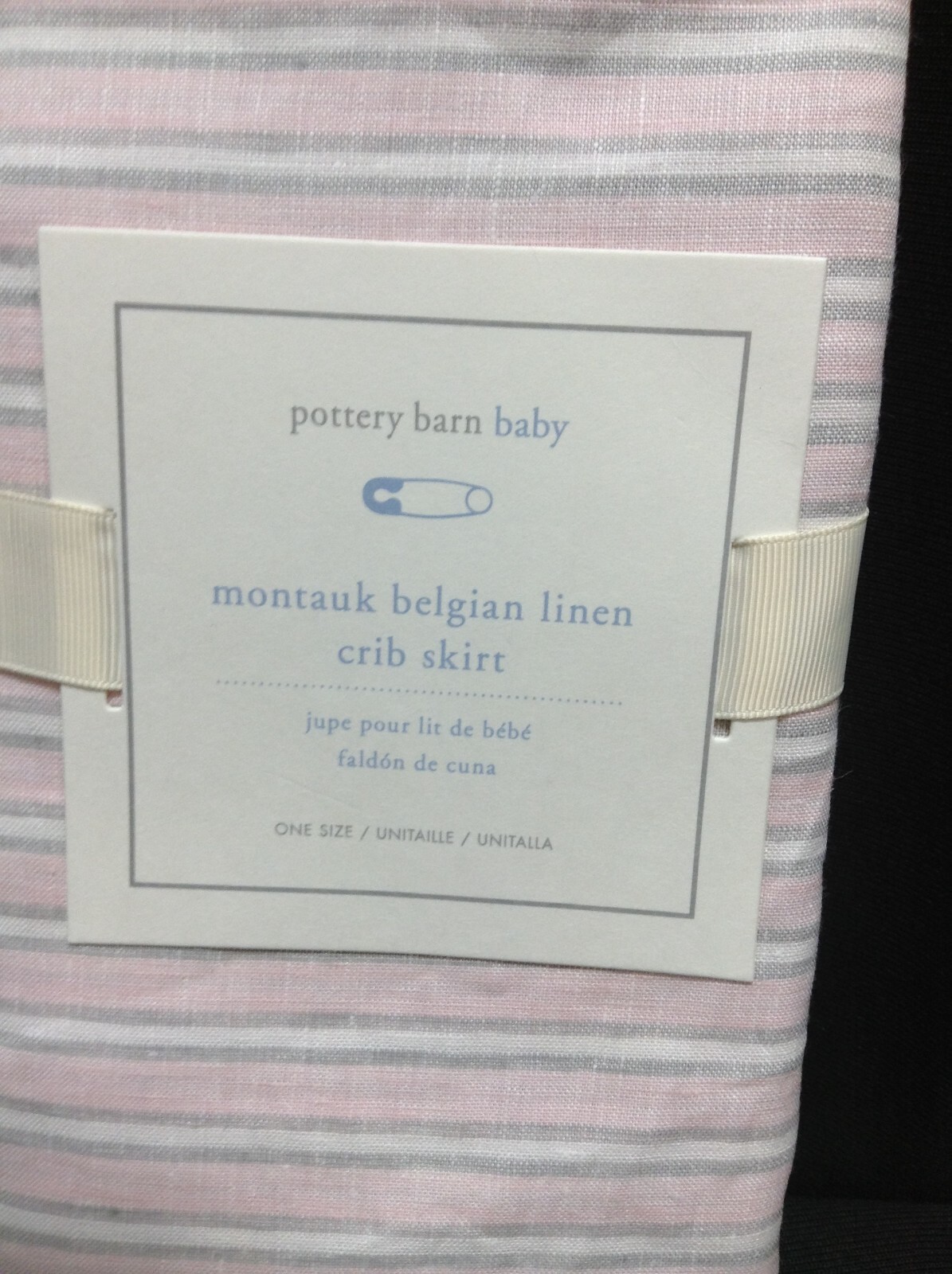 PBK Pottery Barn Baby Montauk Belgian Linen Crib Skirt pink Stripe NEW