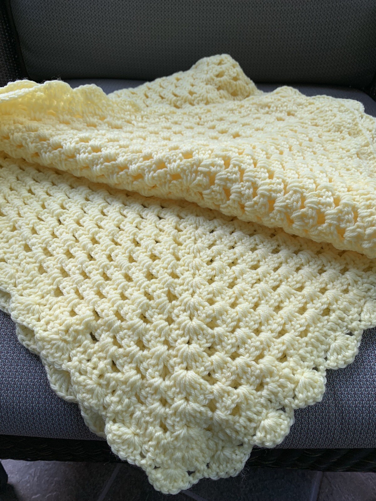 как выглядит Hand Crochet Yellow Square Baby Lap Blanket Afghan 34 X 34 Handmade Boy Girl фото