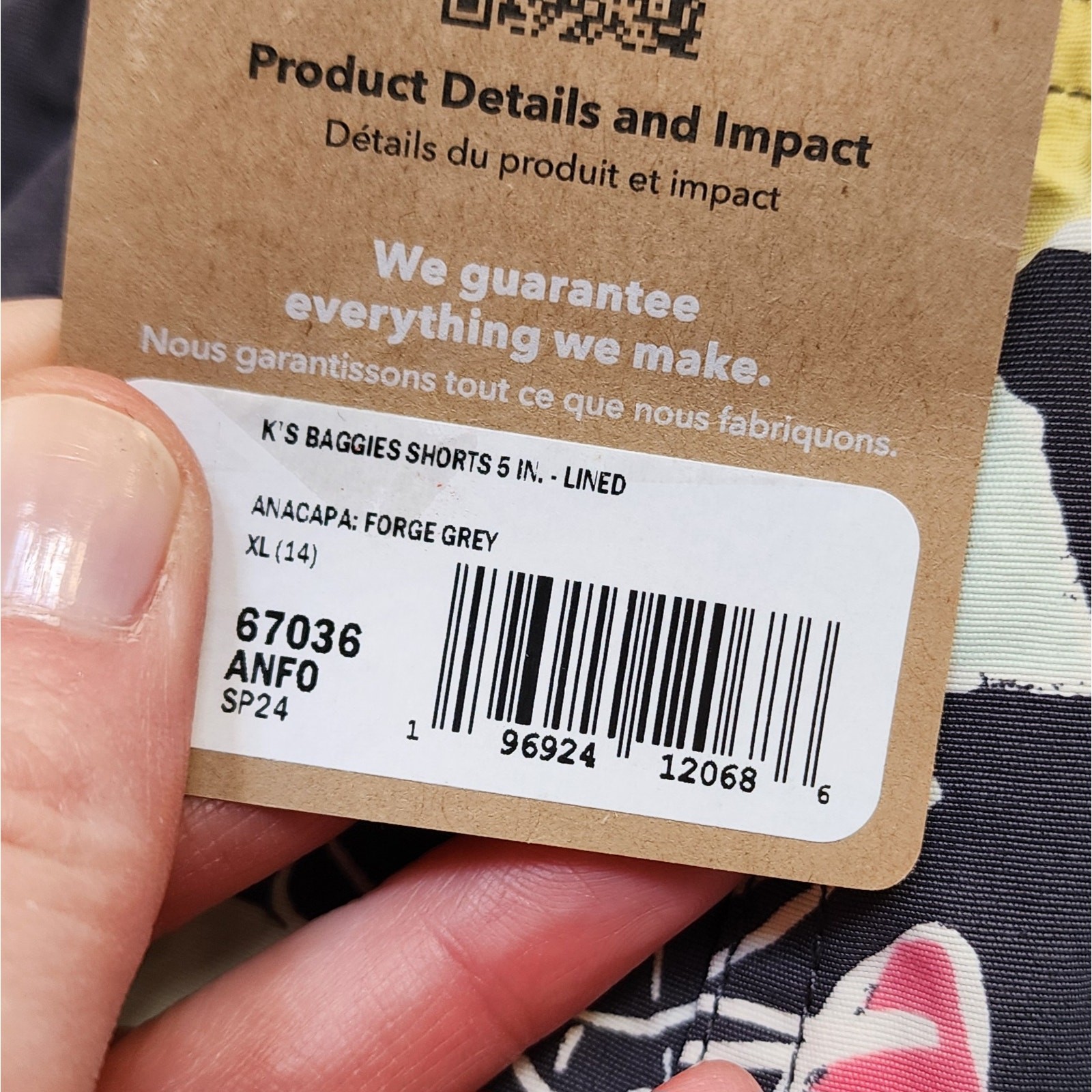 NWT Patagonia Kids Baggies Shorts 5 Lined-Anacapa: Forge Grey