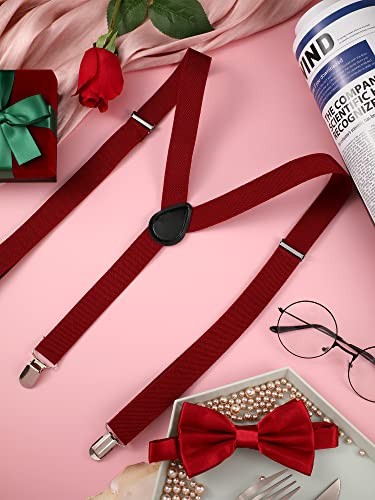 Suspender and Bow Tie Set 80s Clip on Suspenders for Men Women