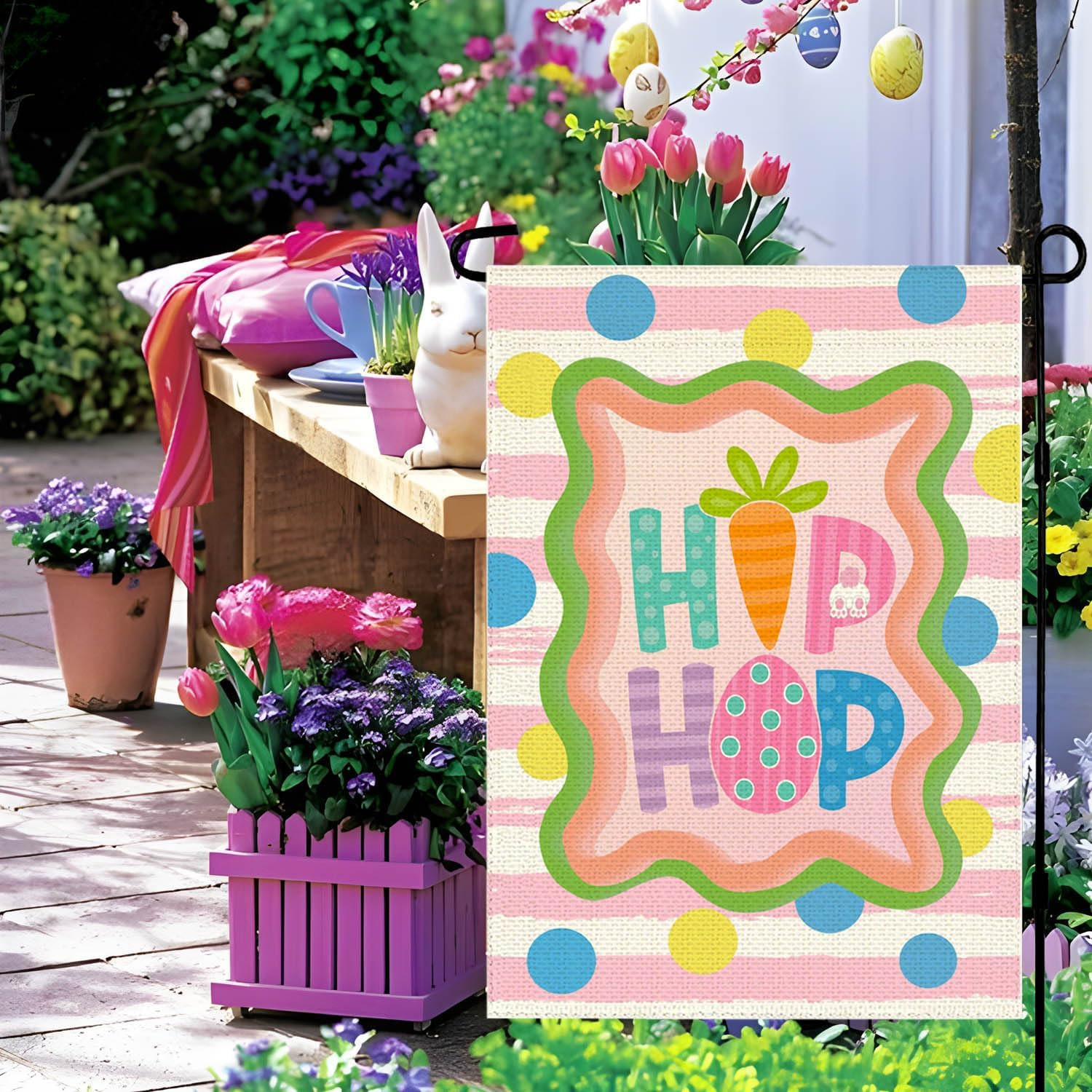 Easter Garden Flag Double Sided 12X18 Inch, Hip Hop Bunny Decorative Yard Outdoo