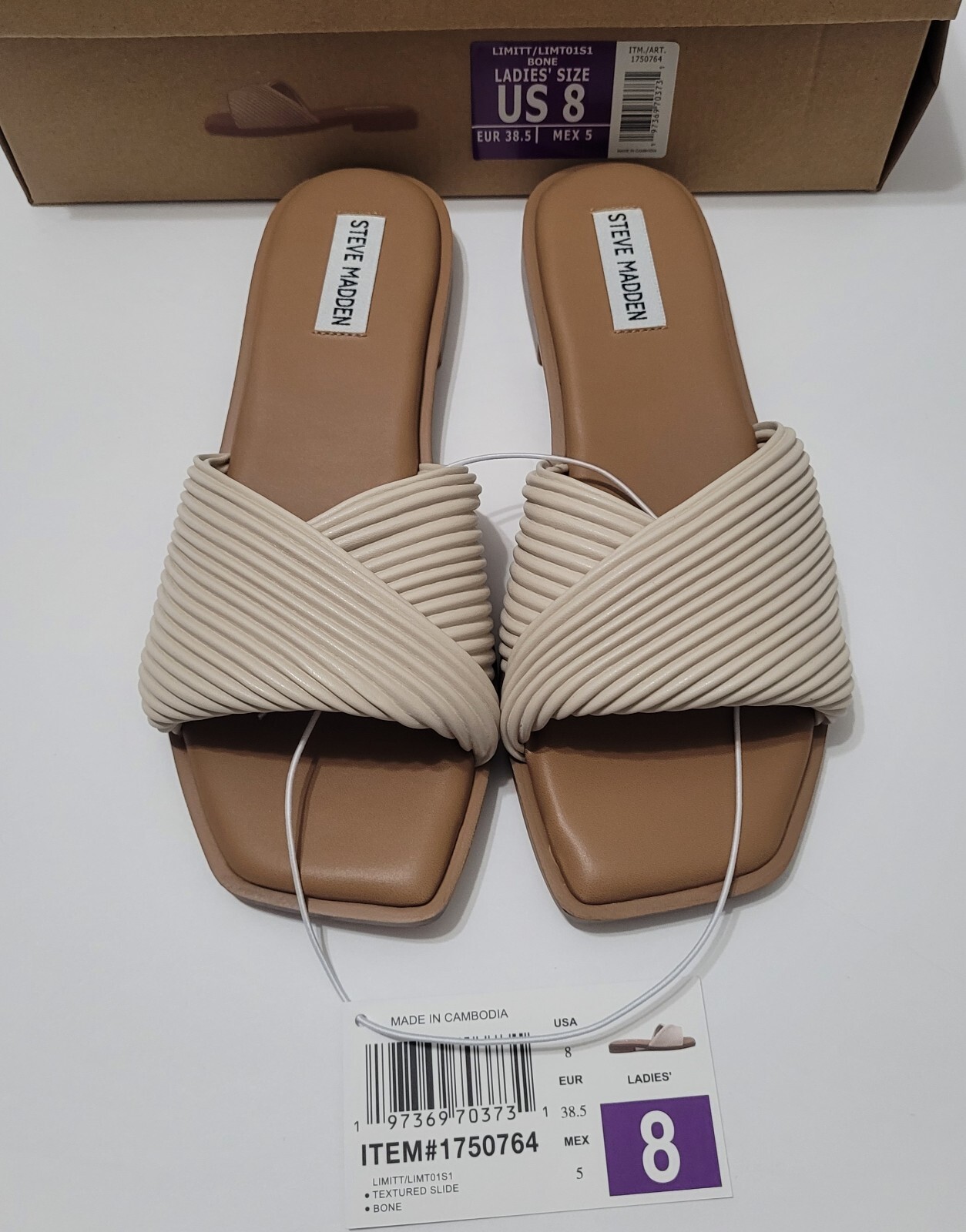 Steve Madden Women's LIMITT textured slide Sandals Size 8, Bone color, New