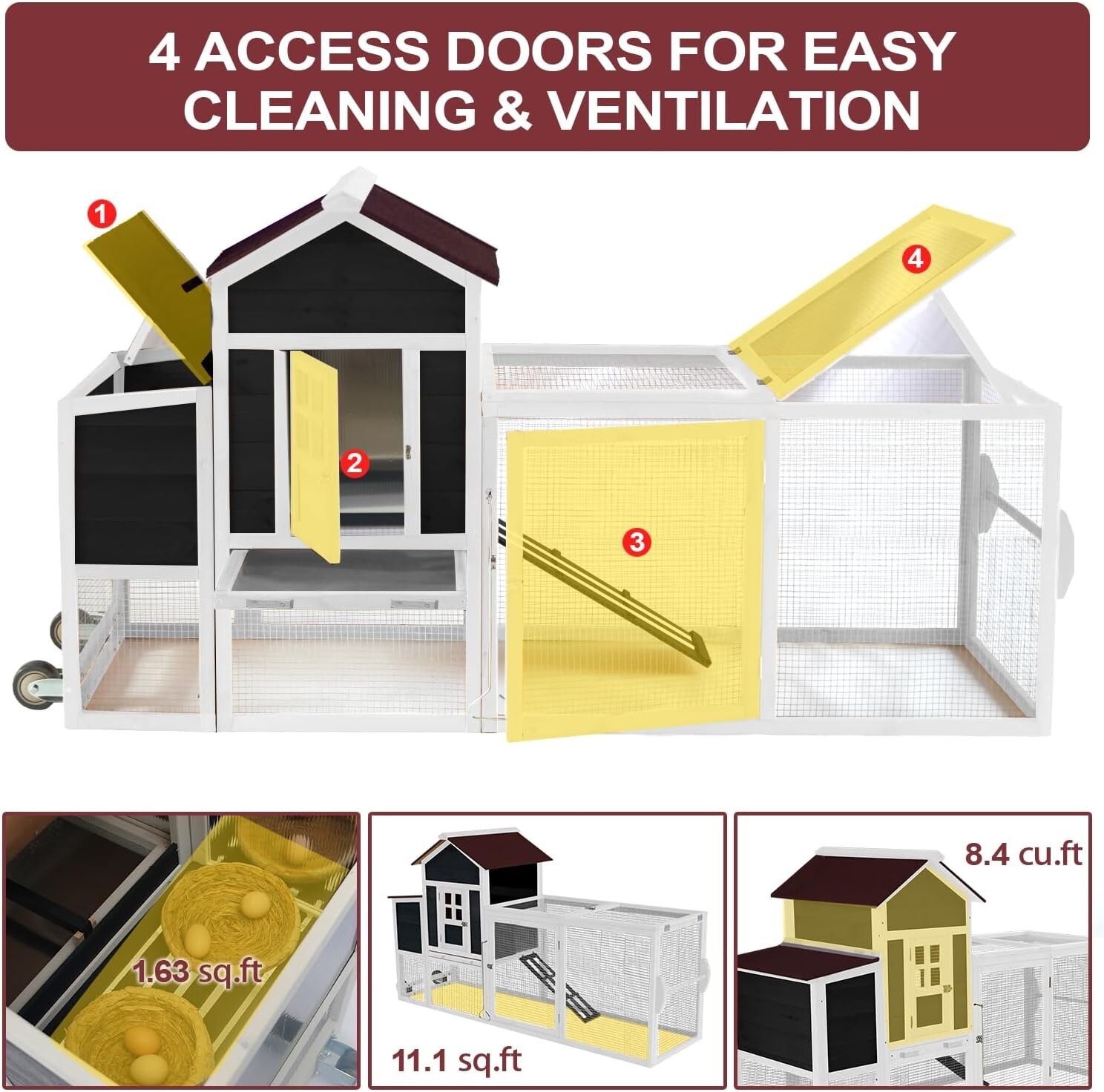 80'' Mobile Chicken Coop w/2 Wheels Nest Box for 2-4 Chickens,Wooden Hen House
