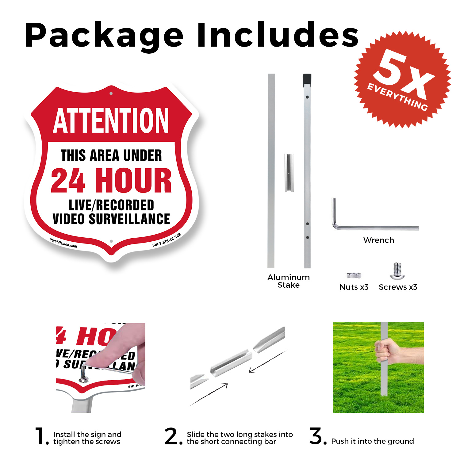как выглядит 24 Hour Surveillance Shield Sign Video Surveillance Tres Shield Sign With Stake фото