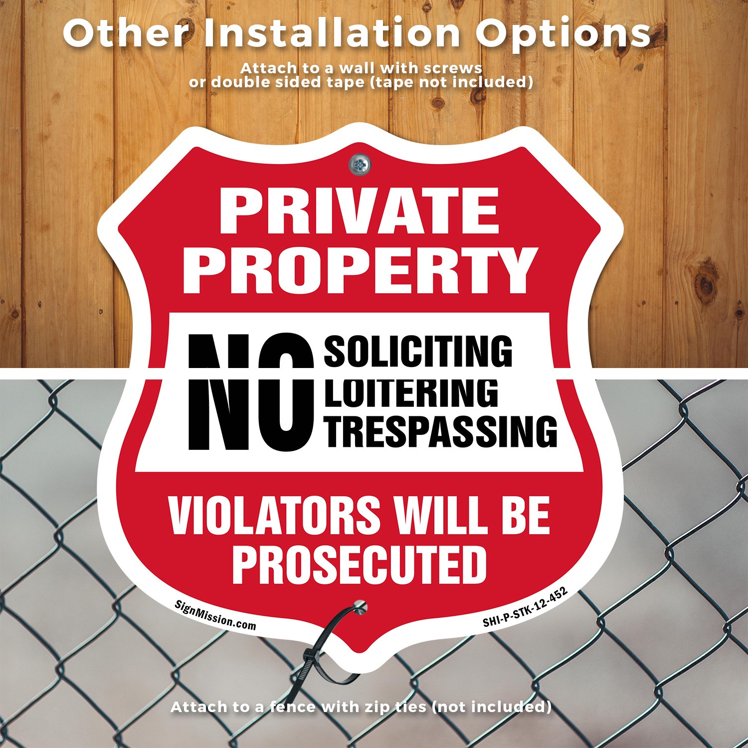Private Property Shield Sign No Soliciting Loitering Tre Shield Sign With Stake